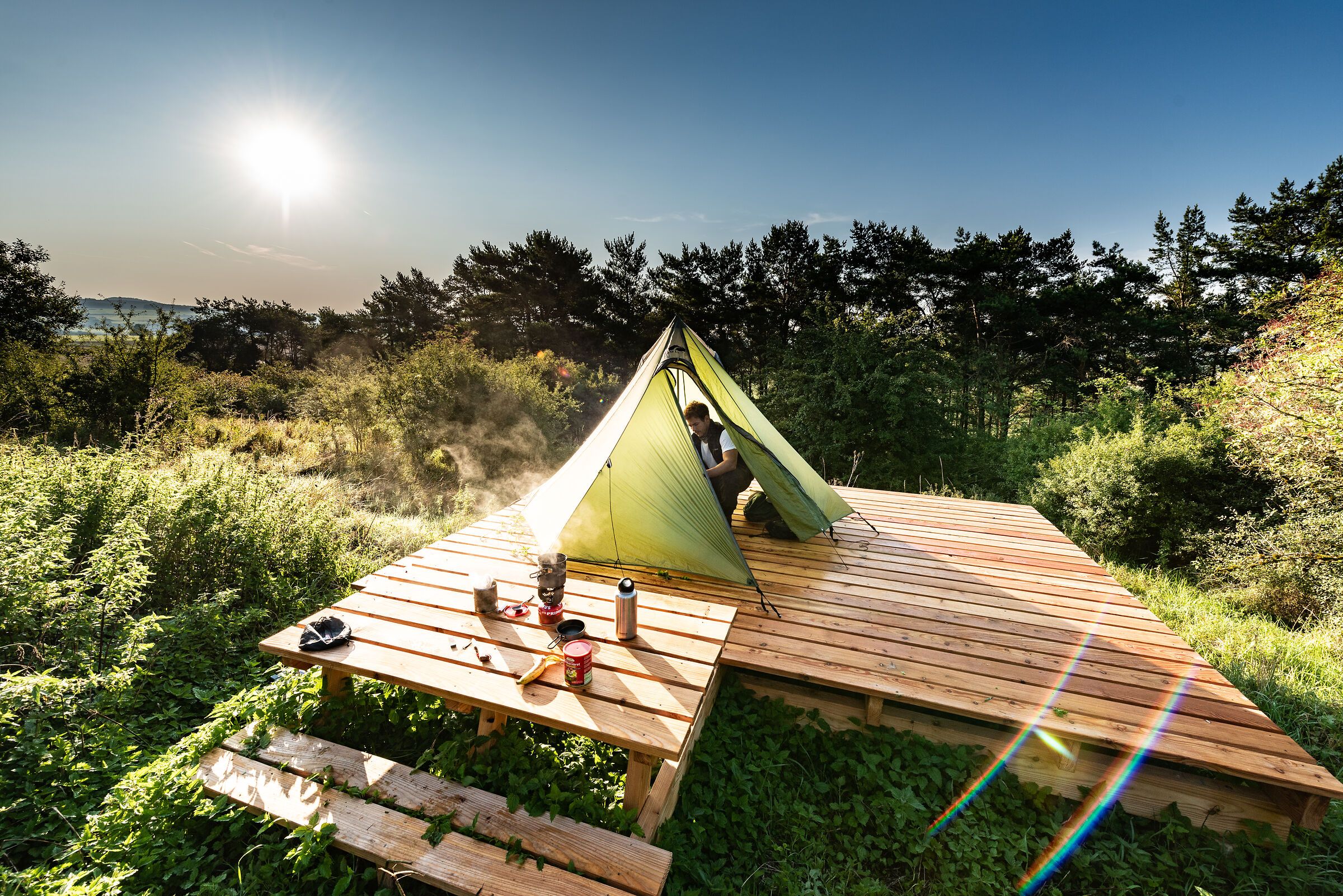Die Plätze bieten genau das, was du brauchst: eine Holzplattform zum Zelten, Tisch, Bank, Komposttoilette – und vor allem Ruhe. Wer bucht, erhält Koordinaten und Wegbeschreibung. Die Plätze liegen zwar abgeschieden, aber nie weit von der nächsten Ortschaft – ideal auch für Trekking-Einsteigerinnen und -Einsteiger.