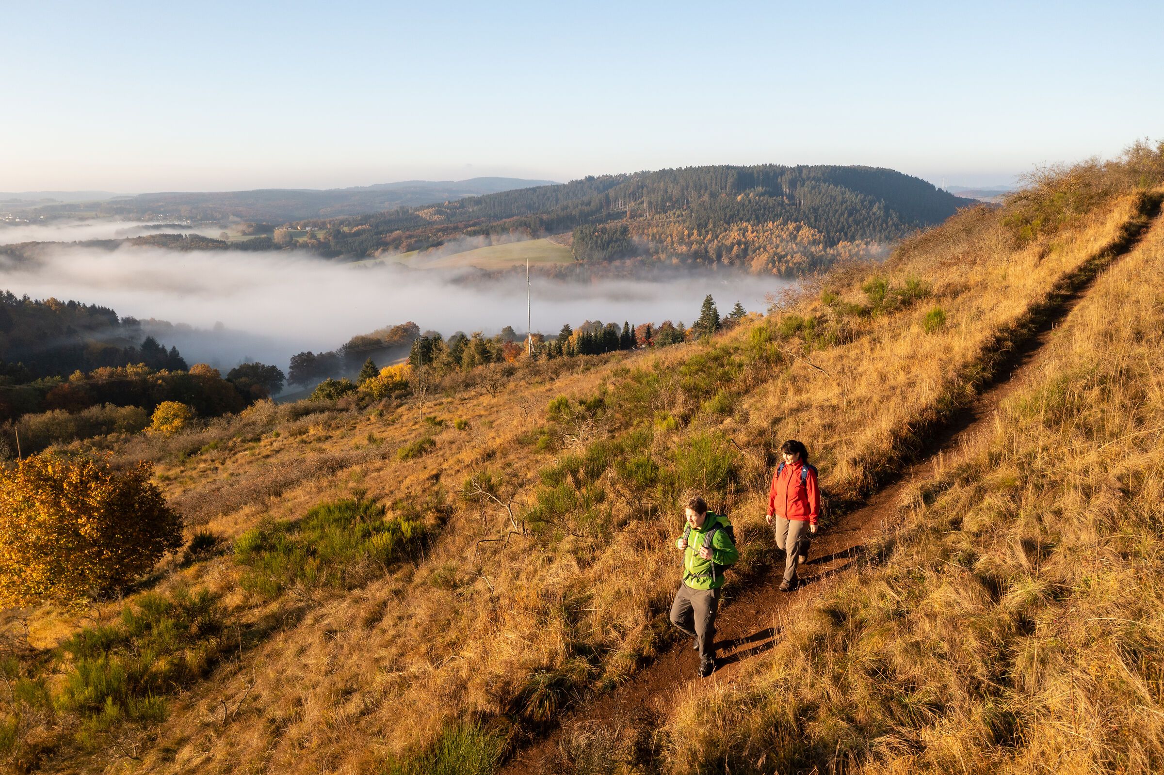 Wenn sich die Eifel in warme Farben hüllt, schenken ihre Aussichtspunkte atemberaubende Weitblicke über Nebeltäler, Wälder und sanfte Höhenzüge. Hier oben wird Landschaft zum Erlebnis und der Herbst zum stillen Schauspiel.