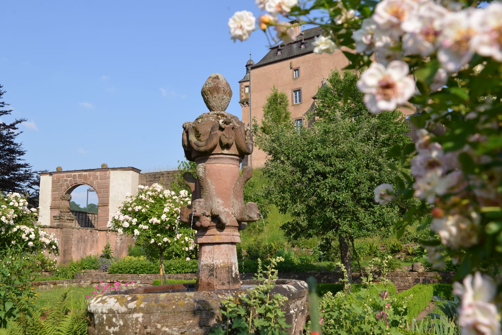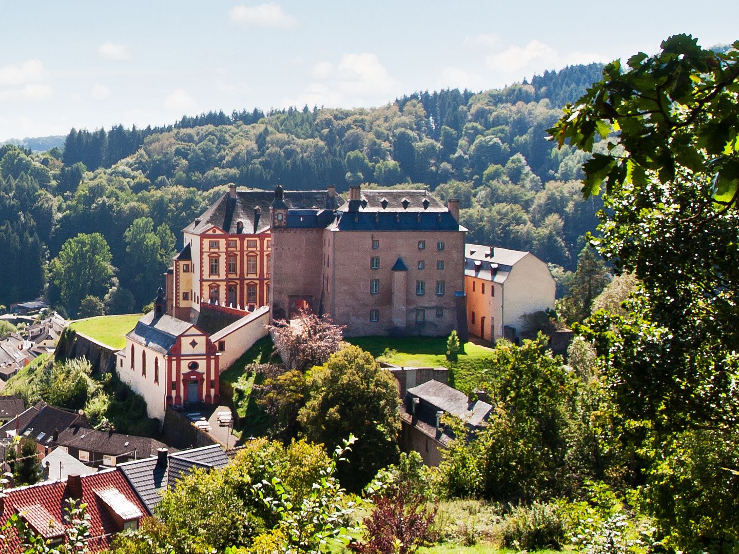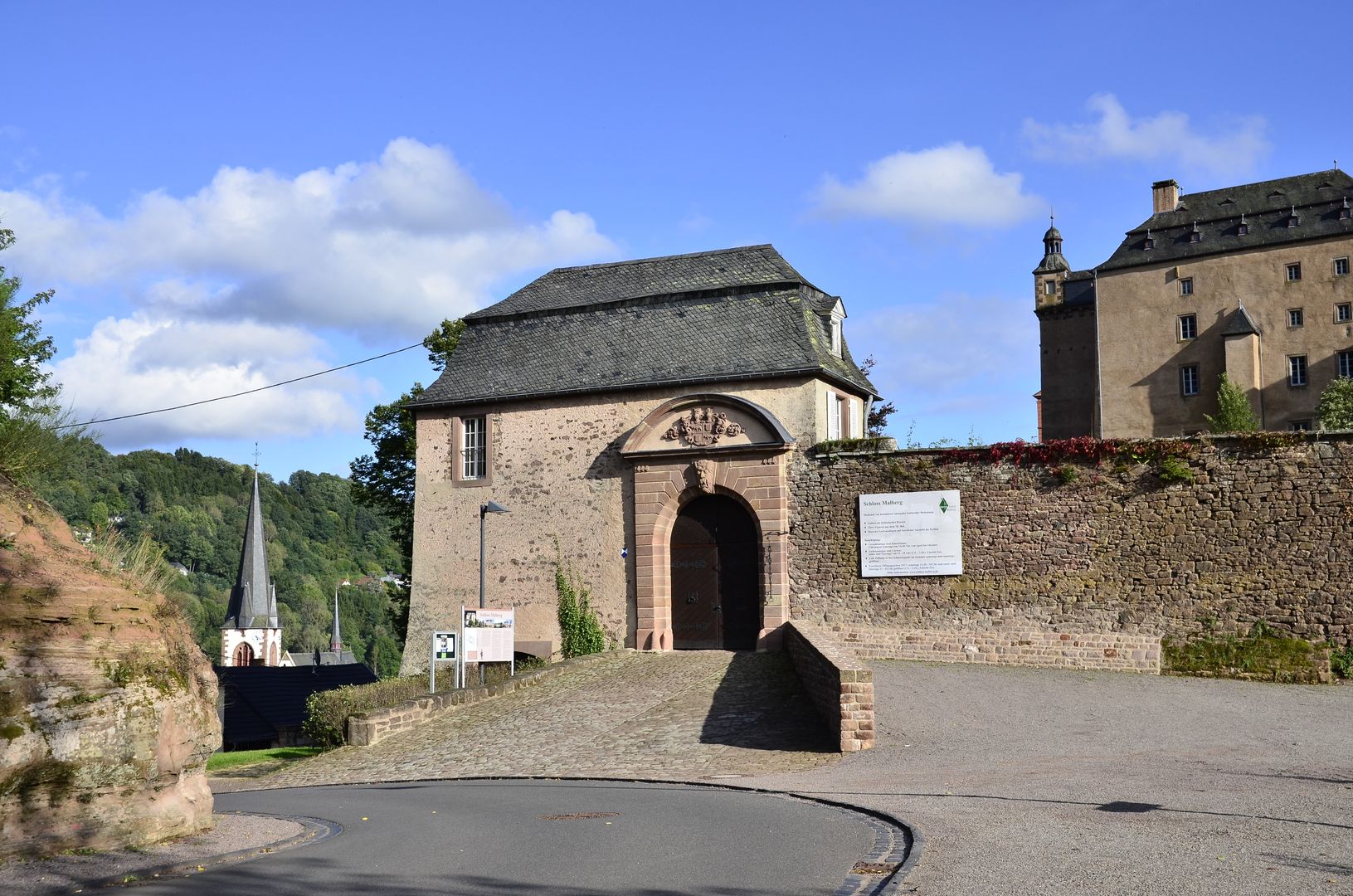 The unique Malberg castle complex consists of the so-called New House, the Old House, the arcade building, the brewery and the chapel. The "Iron Garden" and the "Round Garden" are also part of the castle, which is situated on a mountain spur.