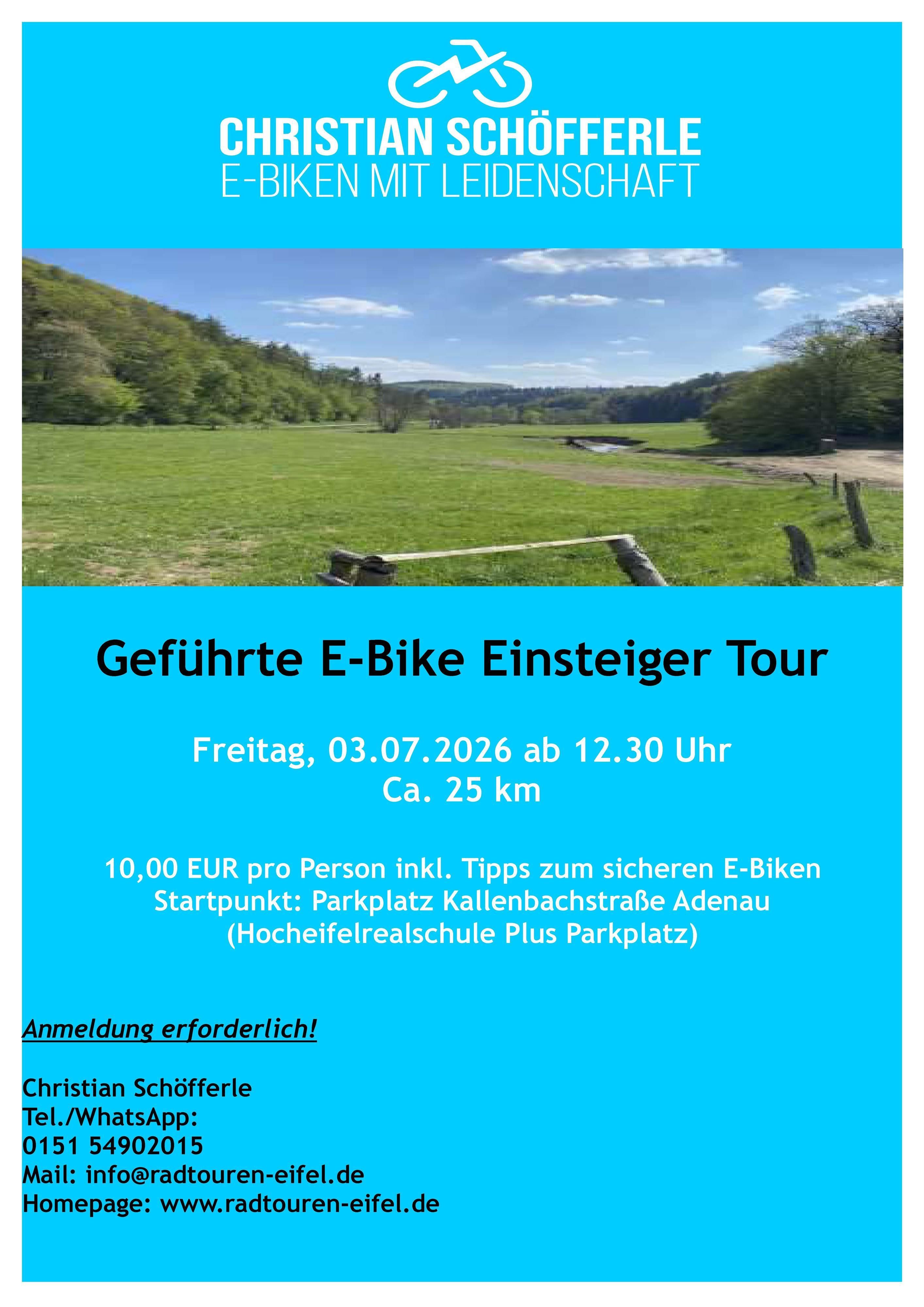 Welcome to Christian Schöfferle - e-biking with passion Explore and discover the Eifel & Ahr Valley by bike. The guided tours are perfect for this.