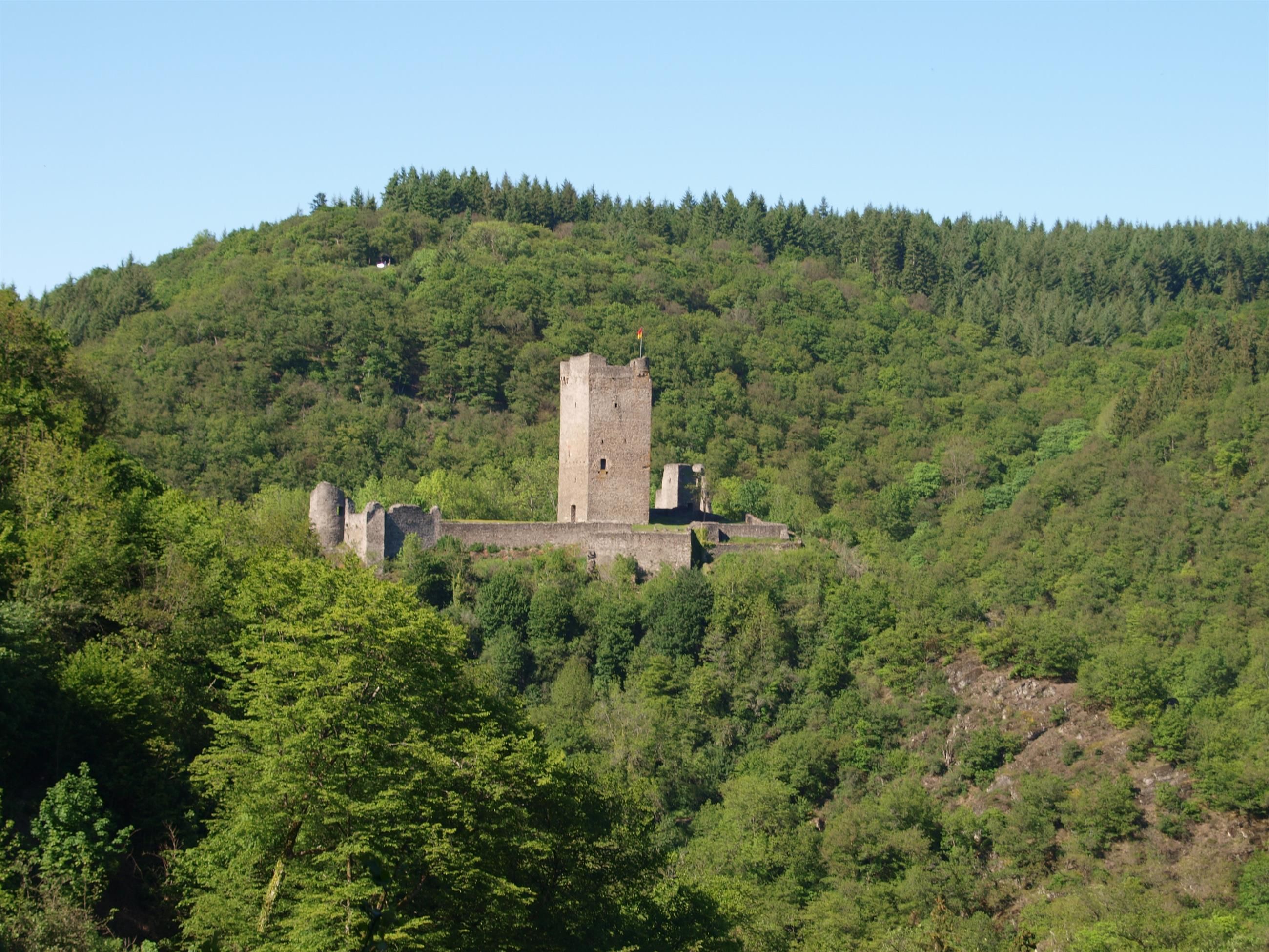 Count Dietrich III of Manderscheid invites you to a historical FACKEL castle walk to the upper castle with stories and explanations about the castles of Manderscheid. explanations about the castles of Manderscheid, the Middle Ages and training as a knight. In the shadow of the "Hillienturm" (defence tower and keep), the young squires can receive their knighthood from the count. The count is accompanied by his vassals, the squire and shield bearer "Lukas von der Fuhr und zur Lieser", as well as the master-at-arms "Georg vom Weiffelsjunk". Farewell and God be with you!