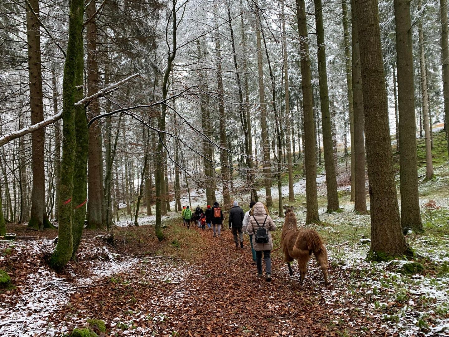 Christmas is over! Did cookies and Christmas roast take a toll on you? Then join us for the Lama-Bacon-Way tour in winter! Right in the morning, we will start our approximately 7-hour trekking in the nature reserve "Schönecker Schweiz." Our winter hike is about 17 km long.
