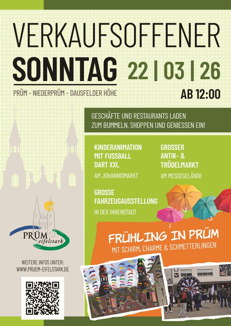 HOME SHOPPING - Sunday shopping The retail trade, markets and businesses in the city of Prüm and the districts of Dausfelder Höhe and Niederprüm will transform the city into a huge shopping center from 12 p.m.