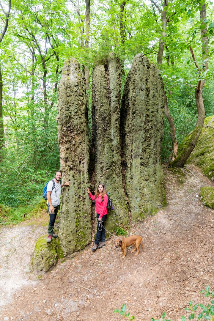 Marco Neises, a native of Bollendorf and creator of ingenious "Lauschtour" (audio tours), is out and about with people from the village. At 10 listening stations in the Bollendorf forest, they tell their stories about the rocks, animals, history and viewpoints. Paul Colljung reveals smuggling stories, the family doctor gives tips and hiking guide Manfred Schmidt warns of a 300-year-old herb witch...You can download the "Grüne Hölle Bollendorf" audio tour to your smartphone free of charge via the app.
