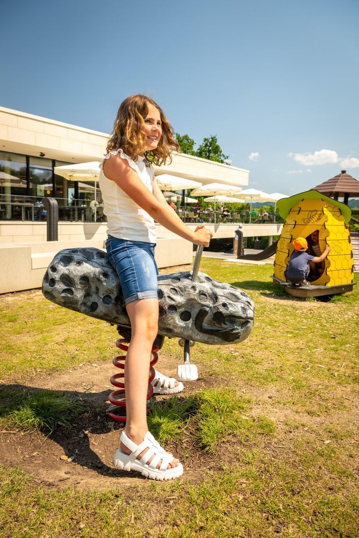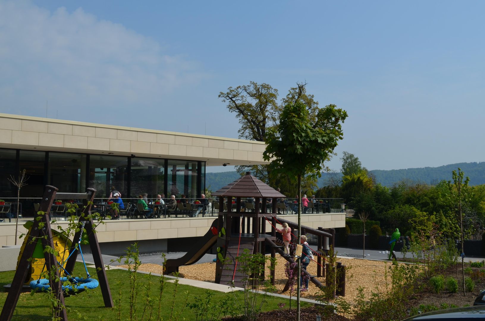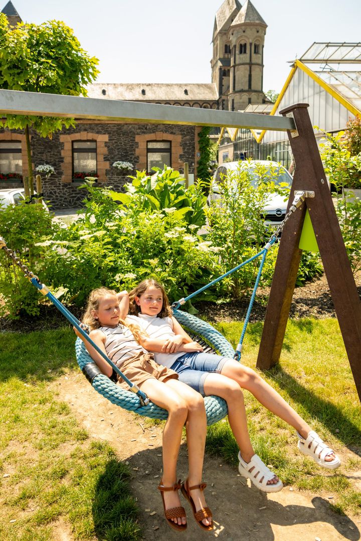 After almost two years of construction, the new Maria Laach monastery restaurant has been open since spring 2022. The monastery restaurant is located between the Seehotel and the monastery nursery. With the construction of the restaurant, the Benedictine Abbey has literally opened up further to visitors: A section of the Klausur wall was removed to provide barrier-free access to the nursery and restaurant, and it also provides a completely new view of the abbey church. Around the new monastery restaurant, a new square situation invites visitors to linger. The offer is rounded off by a playground for small and older children. The playground is directly visible from the spacious terrace of the monastery restaurant.