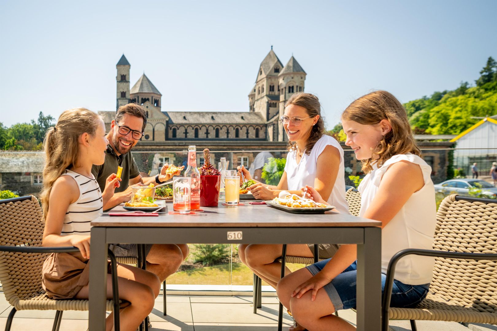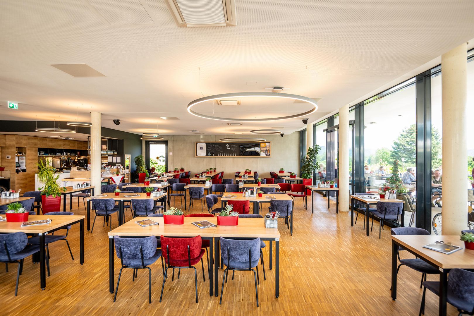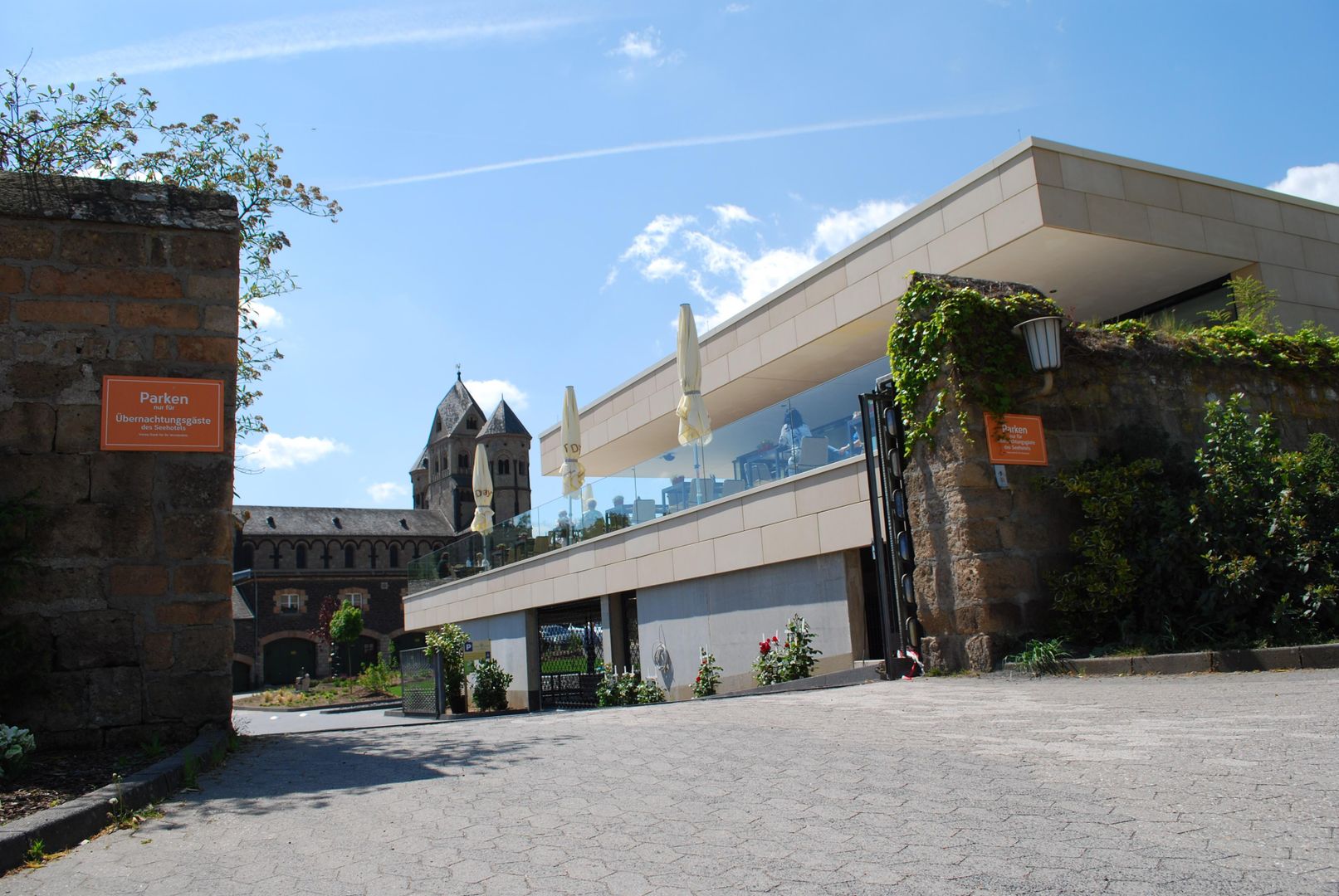 After almost two years of construction, the new Maria Laach monastery restaurant has been open since spring 2022. The monastery restaurant is located between the Seehotel and the monastery nursery. With the construction of the restaurant, the Benedictine Abbey has literally opened up further to visitors: A section of the Klausur wall was removed to provide barrier-free access to the nursery and restaurant, and it also provides a completely new view of the abbey church. Around the new monastery restaurant, a new square situation invites visitors to linger. The offer is rounded off by a playground for small and older children. The playground is directly visible from the spacious terrace of the monastery restaurant.