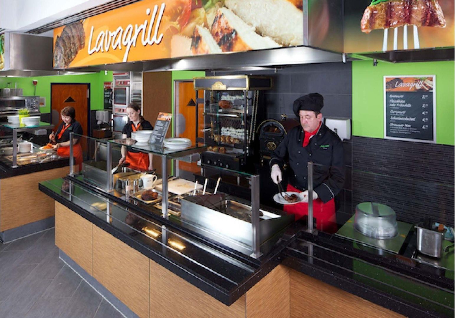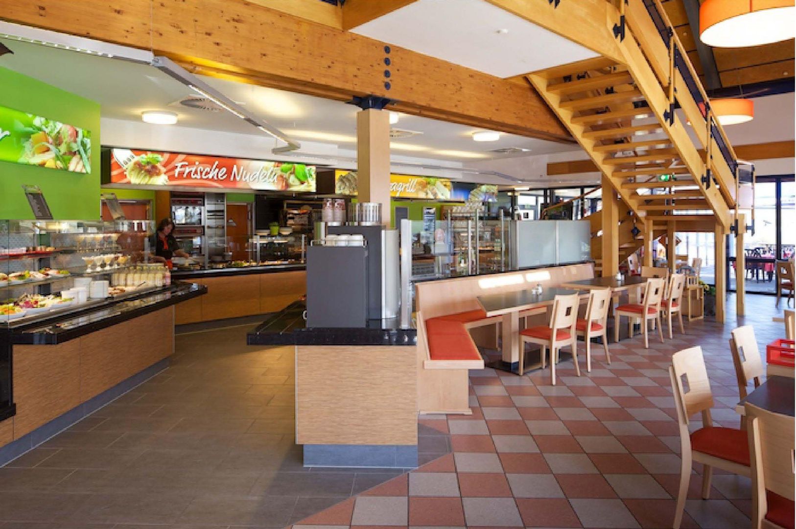 With more than 100 seats and the perfectly planned self-service area, the restaurant offers freshly prepared pasta and meat dishes from the grill, as well as crisp salads and an extensive breakfast buffet.
