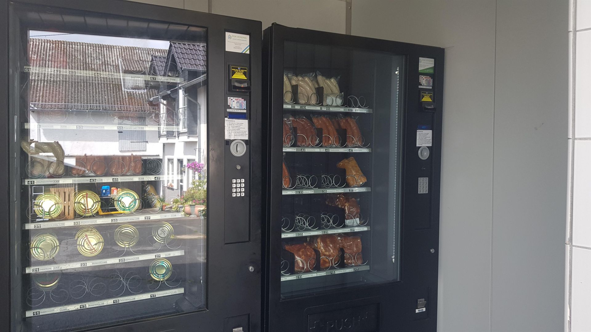 Sausage machine of the butcher's shop Jonas with meat and sausage specialties from own production.