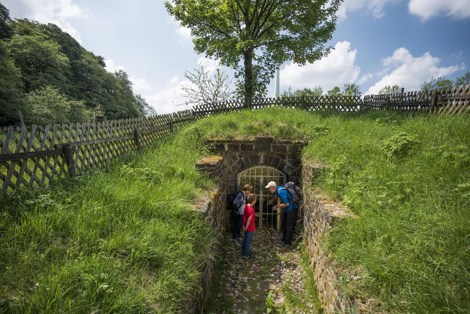 The direct access to the source bunker is closed by a door for safety reasons. With little air movement, an invisible CO2 layer up to 20 cm high collects at the bottom of the bunker. Animals and humans who come too close to this area are in mortal danger if they inhale the gas! Particular care is needed with dogs and fallen children. Only a few breaths are enough to die. Visitors should also do the CO2 test outside the walls with a candle or lighter: if the flame goes out, the CO2 concentration is very high.
