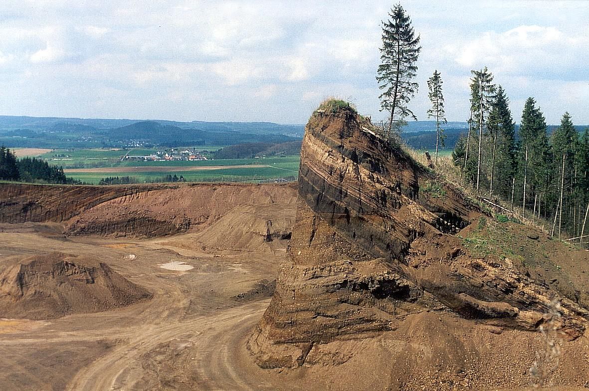 To the west of the village of Rockeskyll lies a geotope of special dimensions and category, a volcanic complex from the Quaternary period. The latter began about 1.8 million years ago and continues to this day. The volcanic buildings and volcanic deposits can be seen like in a picture book. You can lay your hands on cooled lava and cinder ash layers, see the crater rim and understand how activity moved from one vent to another.