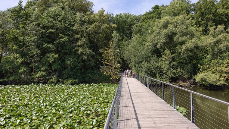 There is a lot to discover at Brückenkopf-Park Jülich, a family and leisure park. With its Napoleonic fortifications, the park offers around 30 hectares of leisure fun for young and old. At the heart of the historic fortifications is a so-called Kronwerk. Activity areas blend harmoniously into garden and woodland landscapes. Visitors can expect well-tended gardens, play and activity areas and oases of peace. Highlights for children are the numerous playgrounds such as "Kind & Kegel", the water play areas and mini golf. For older children, there are climbing rocks, disc golf, a football pitch, a beach volleyball court and a skate park. Visitors will also find parks, forest walks, natural orchards and beautiful gardens. Several animal enclosures and aviaries of the Brückenkopf Zoo with over 400 animals are also integrated into the grounds. Absolute favorites are the meerkats, white fallow deer, arctic wolves, kangaroos and porcupines. But many other furry companions such as donkeys, goats and wild boars also delight visitors young and old. Over the years, the Brückenkopf Park has also established itself as an extracurricular place of learning. Between April and October, the park regularly hosts events such as markets, historical spectacles, music and children's events. Further information and dates can be found at www.brueckenkopf-park.de