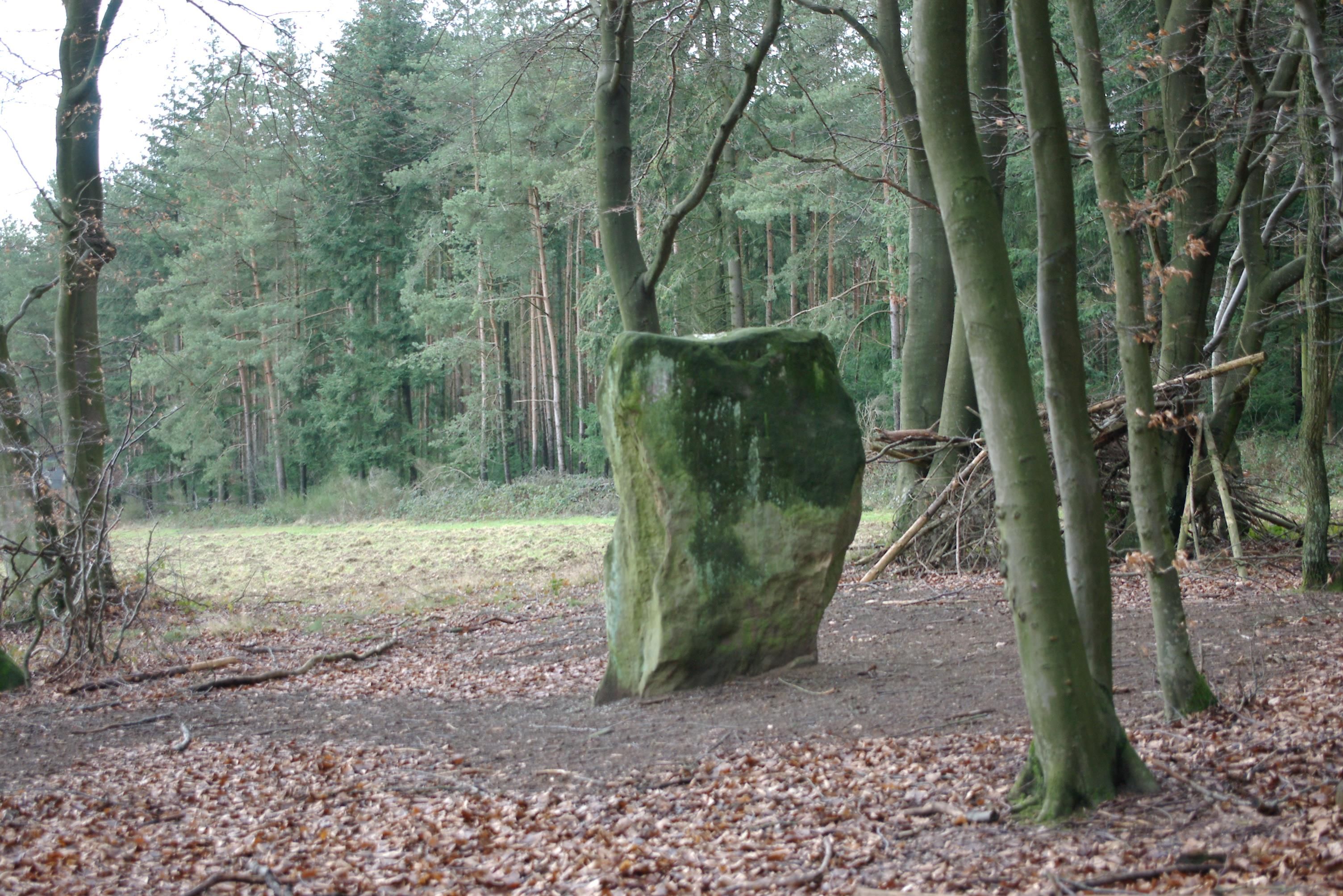 The large ashlar is 2.25 m high, 1.60 m wide and only 30 to 50 cm thick. The name "Druid Stone" after the Celtic priests probably originated in the 19th century as part of the romantic worship of the Celts. However, these large stones have nothing to do with the Celts. The second name "Eckstein" (cornerstone ) indicates that the monoliths, which can be seen from afar, served as "landmarks" in past centuries. Even today, the cornerstone designates a field boundary.