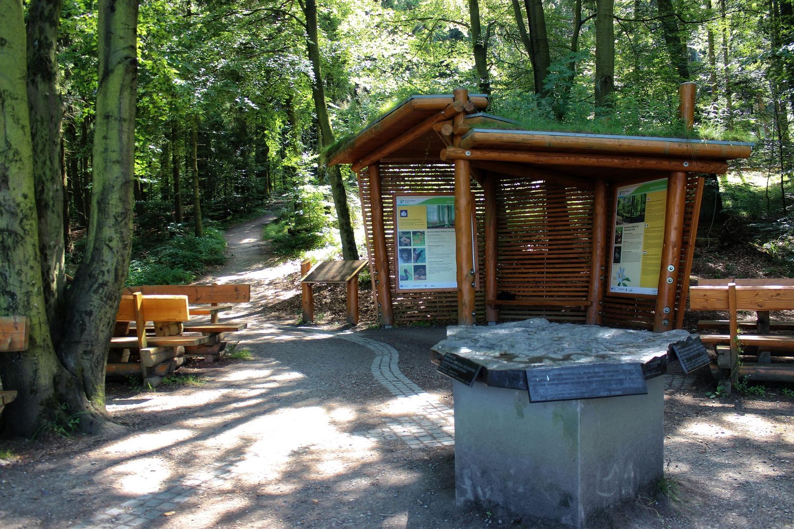 You will find the Eifel View "Hirschley" in the barrier-free nature experience area Wilder Kermeter, which is located in the middle of the Eifel National Park on the Kermeter mountain ridge. There, old and young visitors with and without disabilities can experience the "ecological heart" of the National Park. Native red beech mixed forests grow over a large area on the ridge between Lake Rursee and Lake Urftsee. Situated in the middle of it all, the Wild Kermeter comprises a barrier-free network of paths.
