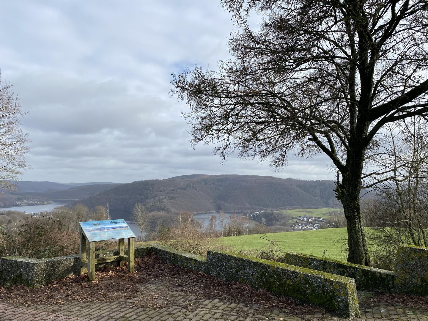 The view from here stretches far across Lake Rursee in an easterly direction into the Eifel National Park. According to the motto "Let nature be nature", typical deciduous forests develop in the Eifel National Park largely without human intervention. Many rare animal and plant species find a home in the extensive deciduous forest stands. Majestic beech forests, gnarled oaks and wild streams: visitors are offered spectacular impressions when they visit the national park. The national park can be experienced on your own or on an expert guided tour. The national park gates in the area provide information about the nature experience opportunities. The Rursee is the main lake of the approximately 24-kilometre-long Rur reservoir and the largest of the 9 reservoirs in the Eifel. It serves to regulate the water in the lower reaches of the Rur, to generate electricity, to provide service water and offers many opportunities for leisure and recreation.