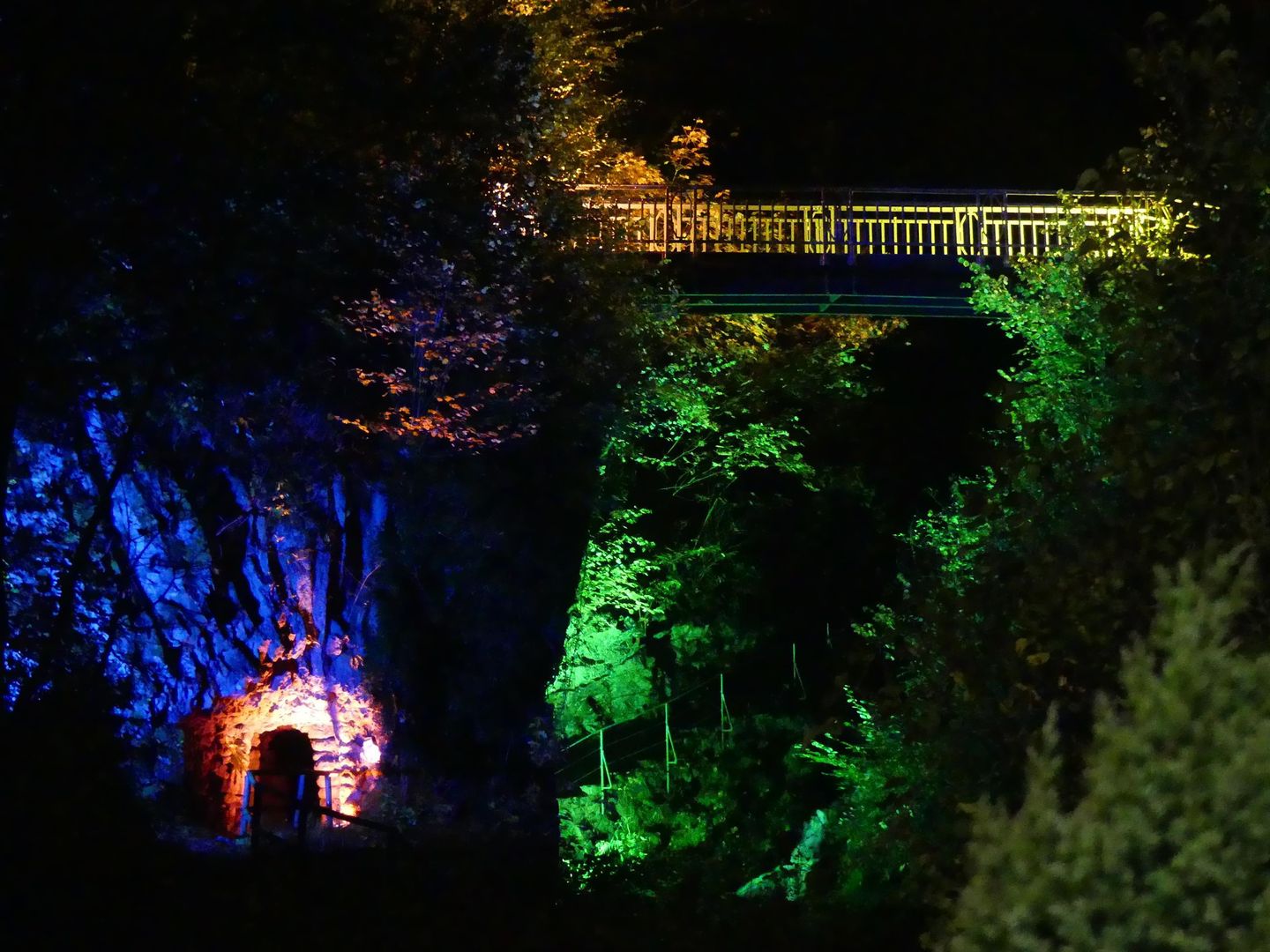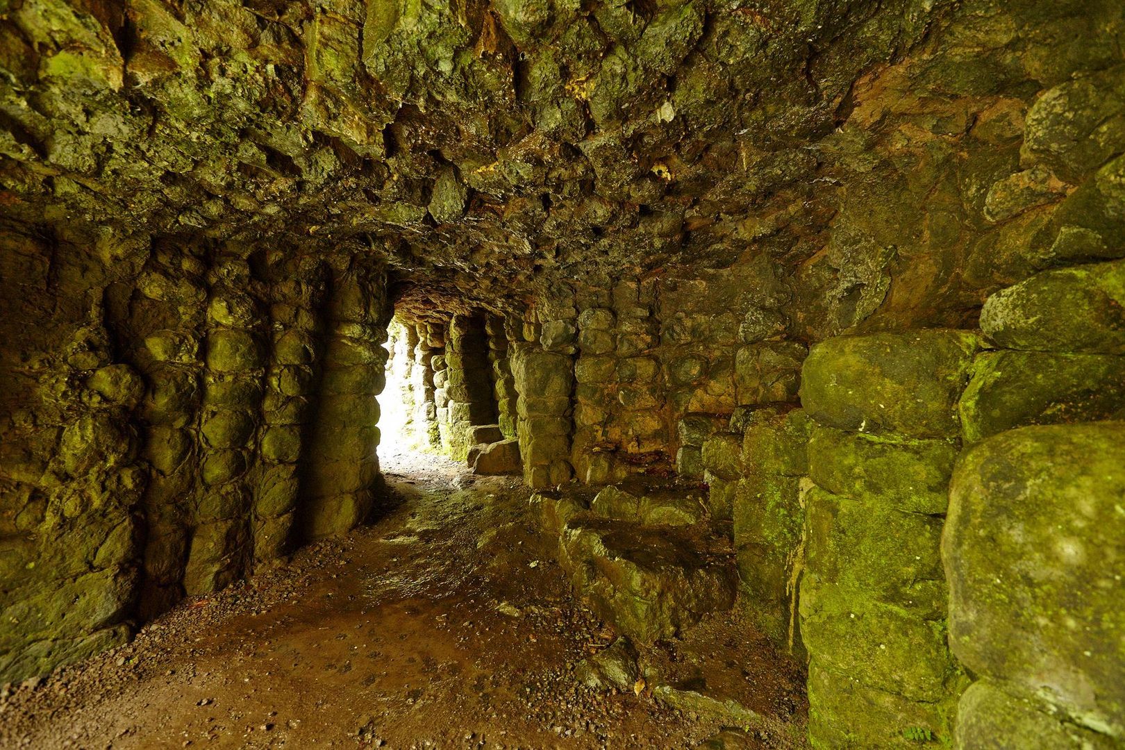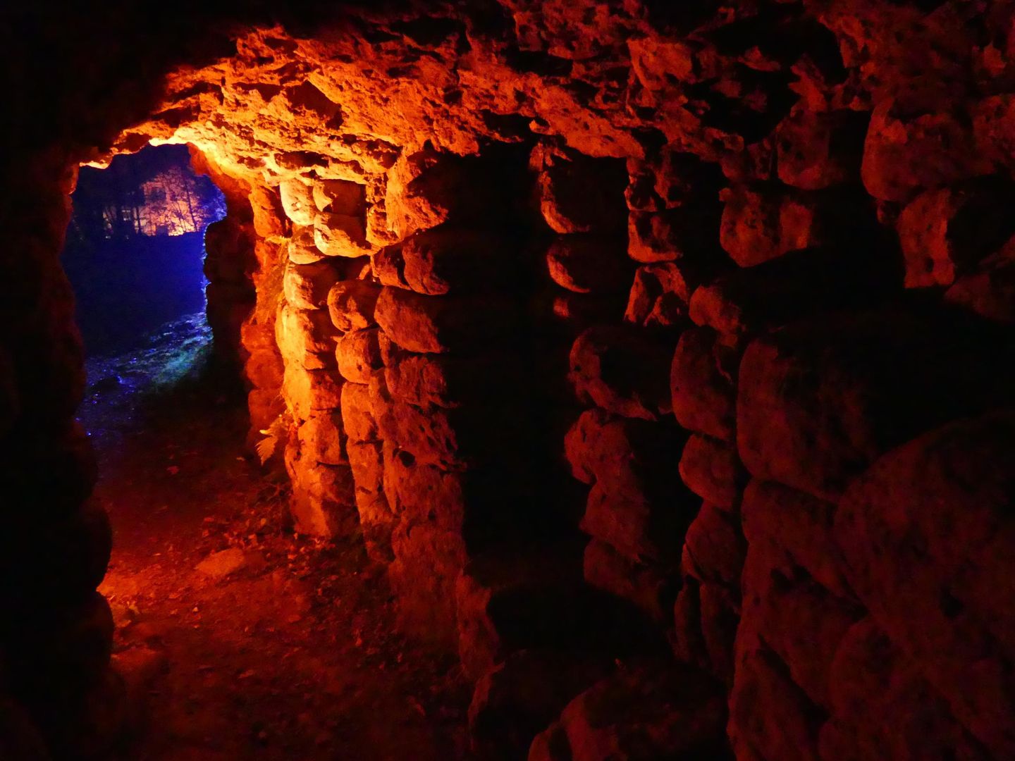 The enchanted Elfengrotte near Bad Bertrich is a popular destination especially for little GesundLand visitors, because here fabulous fairy tales come to life before your inner eye. Sink for a moment into legendary stories and old legends when you visit the small cave. The cave is located directly on the "HeimatSpur Spazierweg Elfengrotte", which is 2.4 km long and can be easily mastered even by children. Right next door, the Elbesbach waterfall plunges into the depths with a roar. This place owes its nickname "Käsegrotte" to the shape of its stones, which resemble round cheese wheels. The cave was formed many thousands of years ago, when glowing hot basalt lava flowed from the high volcanoes into the Üssbach valley and created a unique landscape there. As it cooled, the basalt lava solidified into columns in which horizontal stress cracks developed. Weathering over the centuries created the shape of stacked cheese wheels, which give the Elfengrotte its special appearance.