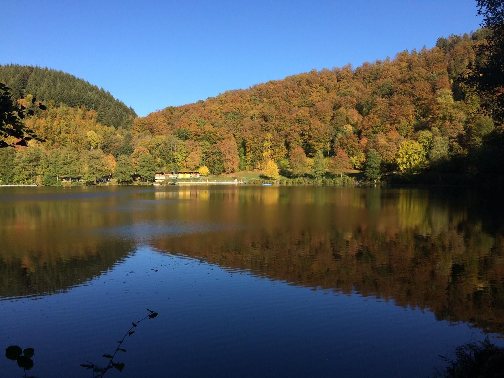 The 30,000-year-old Gemündener Maar, the northernmost and smallest of the three Daun Maars, is picturesquely located in the Eifel, just 1.5 km south of Daun. The maar lake is approximately 325 meters long, 300 meters wide, and covers an area of about 7.2 hectares.