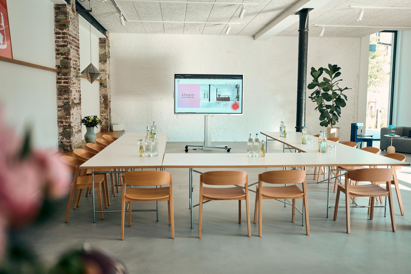 Invite your guests to think creatively in our distinctive and prestigious studio. Here you will find enough space and even more ambience to host meetings, workshops & digital events, receptions, presentations, networking dinners, customer and team events in a relaxed and inspiring atmosphere.