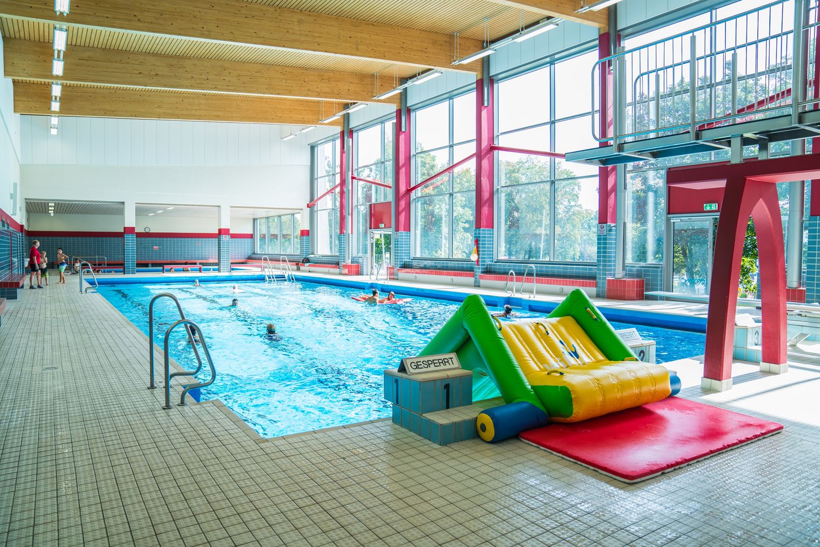 The Linnicher RUBA indoor pool has been open again since 31.08.2013 and has a 25m swimmer's pool and a teaching pool. Many aqua and swimming courses take place in the teaching pool. The indoor pool has aqua boxing, aqua power, baby swimming, swimming courses, teaching pool, starting blocks, aqua fitness, aqua jogging, water gymnastics, swimming pool, 1m diving board, 3m diving board, water games afternoons.