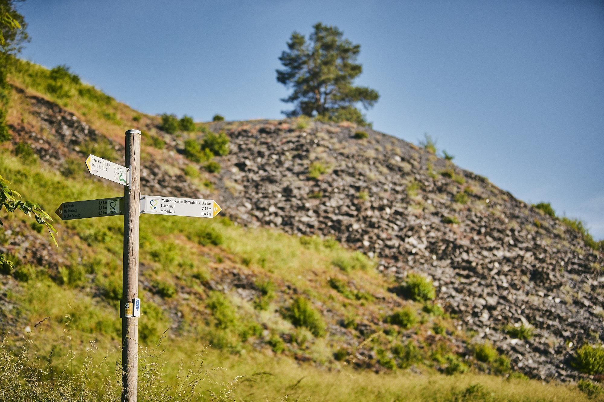 Between the three Eifel towns of Müllenbach, Laubach and Leienkaul lies the spectacular Kaulenbach Valley, where quality roofing slate was once mined. The Schieferregion Kaulenbachtal hiking loop is a 14.2 km trail that starts in one of three idyllic Eifel villages: Müllenbach, Laubach or Leienkaul. A highlight of the route is the monastery and pilgrimage church of Maria Martental, which dates back to 1140. Kaulenbach Valley was once one of the most famous slate quarries in the slate mountains on the left bank of the Rhine. Until 1959, top quality roofing slate was mined in Kaulenbach Valley. Due to a water ingress at the Maria-Schacht mine, however, mining was stopped. Since then, the Kaulenbach Valley has become a refuge for rare and endangered animal and plant species. For example, the thermophilic wall lizards now live in ideal conditions in the mighty spoil heaps and bats find a protected place in the numerous tunnels during the winter months.