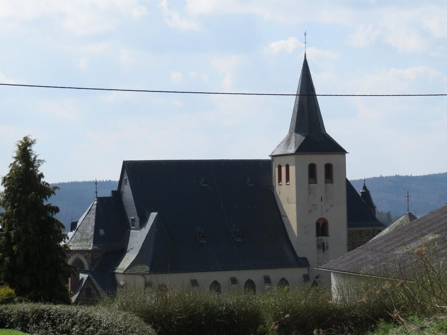 The verifiable building history of the parish church in Wanderath begins in the 13th century. The original church is Romanesque, around 1500 the late Gothic nave, today's aisle, was built with the help of the Counts of Virneburg, who were the patrons of the church. When the church was enlarged by a south and north aisle around 1530, the side walls of the old church were broken through. In 1655 Wanderath becomes an independent parish. These include the places Engeln, Büchel, Freilingen, Nitz, Ober- Mittel- and Niederbaar, Herresbach, Eschbach, Döttingen, Siebenbach and Drees. Virneburg was added at the beginning of the 19th century. For this, Drees is assigned to Welcherath. In 1896/1897 the current, neo-Gothic main nave was built. The two Gothic aisles are being demolished. In 1921/1922 the church was expanded again. The then octagonal sacristy was torn down and the current one built. The main nave was lengthened by 10 m and the gallery was built. The tower was raised by 6 meters. In addition, the church received a continuous roof area. Since then, the outward view has not changed. Since Wanderath only consisted of a church, a rectory, a school and a residential building until the middle of the 19th century, there are many legends and myths surrounding the question of why a church was built in the poor Wanderath at all.