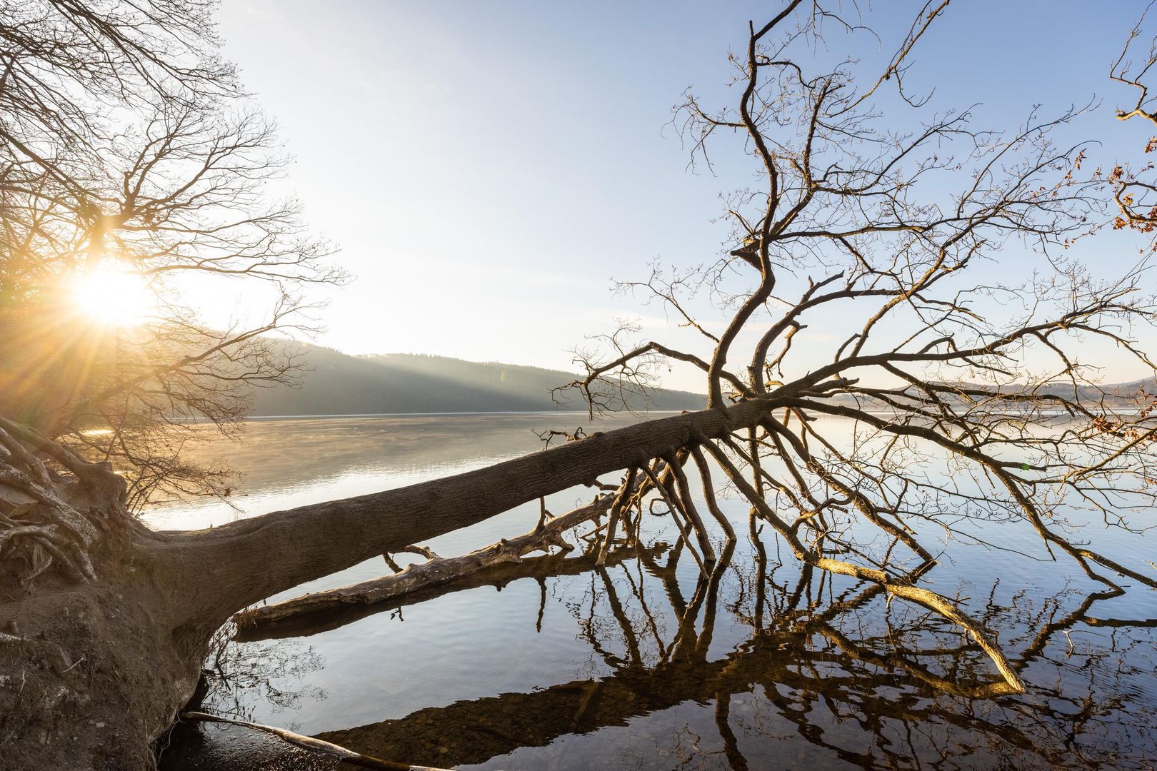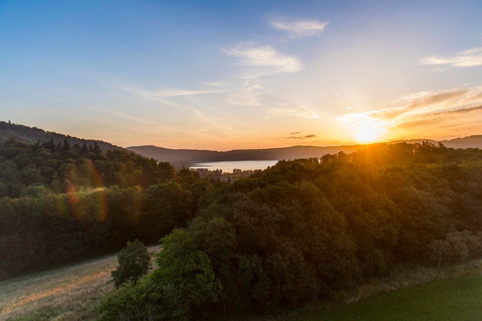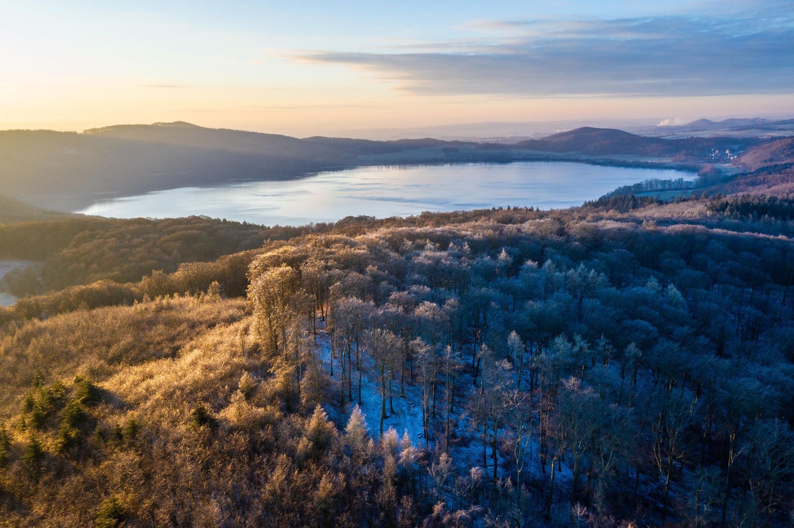 With around 3.3 km² and a depth of 53 m, Laacher See is the largest lake in Rhineland-Palatinate. The area around the lake has been a nature reserve for almost 80 years. The last eruption of the former “Laacher volcano” occurred around 10,930 BC. B.C., about 13,000 years ago. Traces of volcanic activity can still be found in the form of volcanic outgassing, the so-called mofettes, on the eastern shore of the lake. The total ejection quantity of the outbreak at that time was about 16 km³. The eruption was one and a half times as strong as that of Pinatubo in 1991, or 6 times as strong as the eruption of Mount St. Helens in 1980. Although Laacher See is widely regarded as the largest maar in the Vulkaneifel, it is scientifically not a maar and also not a real crater lake, but a water-filled caldera - a burglary crater that resulted from a collapse after the magma chamber was emptied below the volcanic cone. The volcanic mountain collapses and only the ring bead on the outer edge remains. Over time, the remaining boiler fills up with water. The Laacher See is in the Eifel, next to the neighboring Wehrer Kessel, the largest caldera and the only water-filled one in Central Europe.