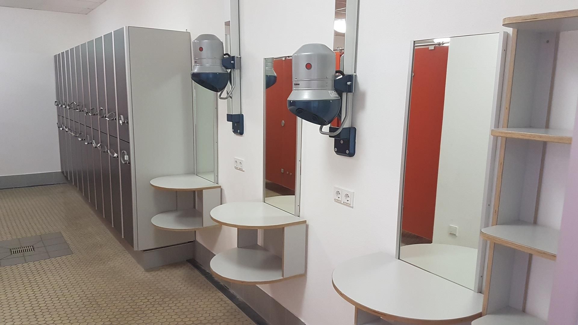 Access to the pool is via an automatic pay station with access control, allowing visitors to enter smoothly. Cloakroom lockers are available, each equipped with a deposit lock. Please note that the automatic pay station stops issuing tickets 45 minutes before closing time. Bathing time ends 15 minutes before the pool closes.