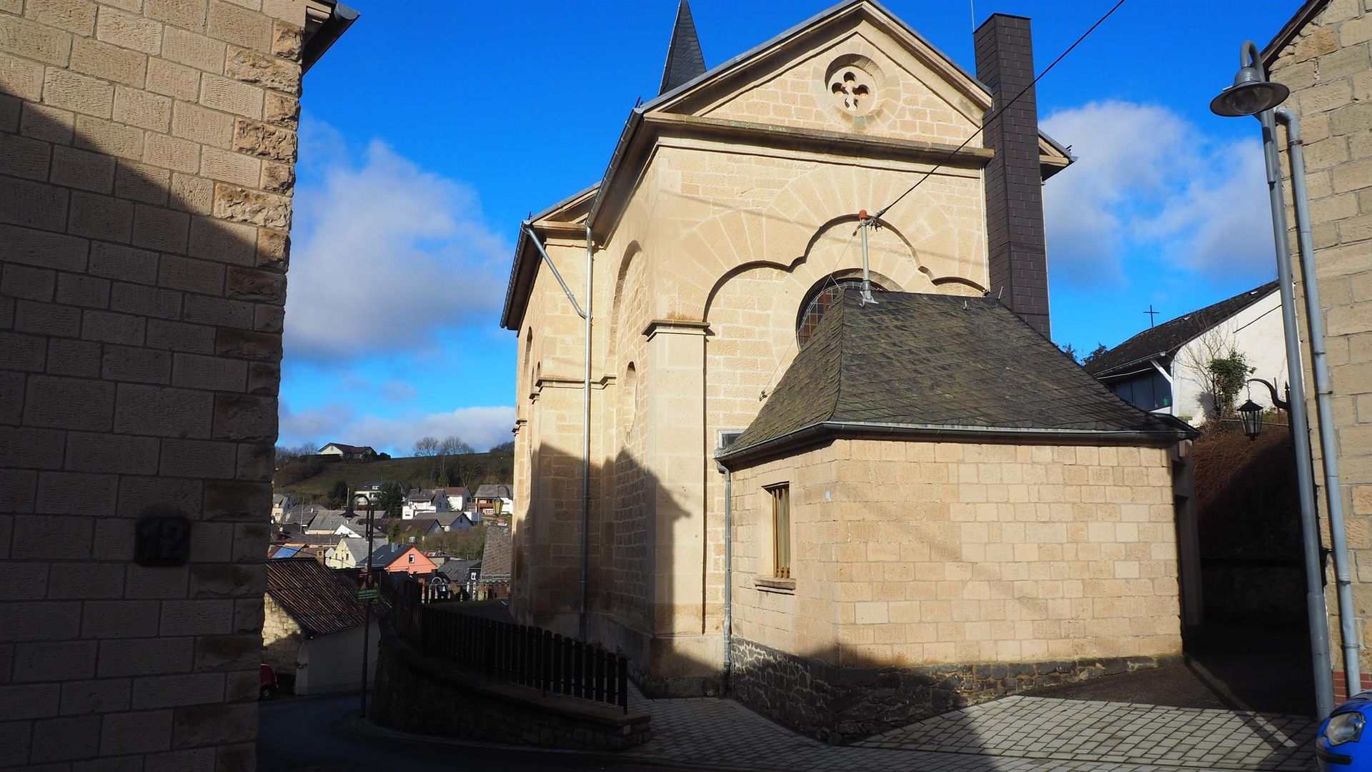 The parish church of Waxweiler St. Johannes der Täufer is located in the middle of the village on a ledge between Prüm and Weiherbach on the main road.
