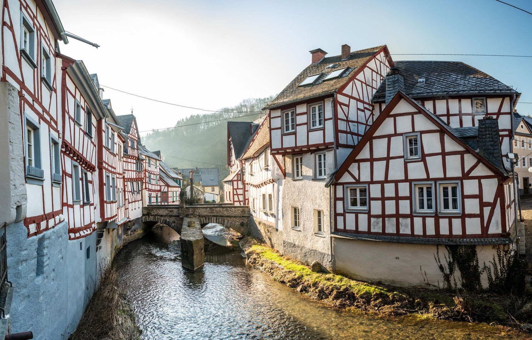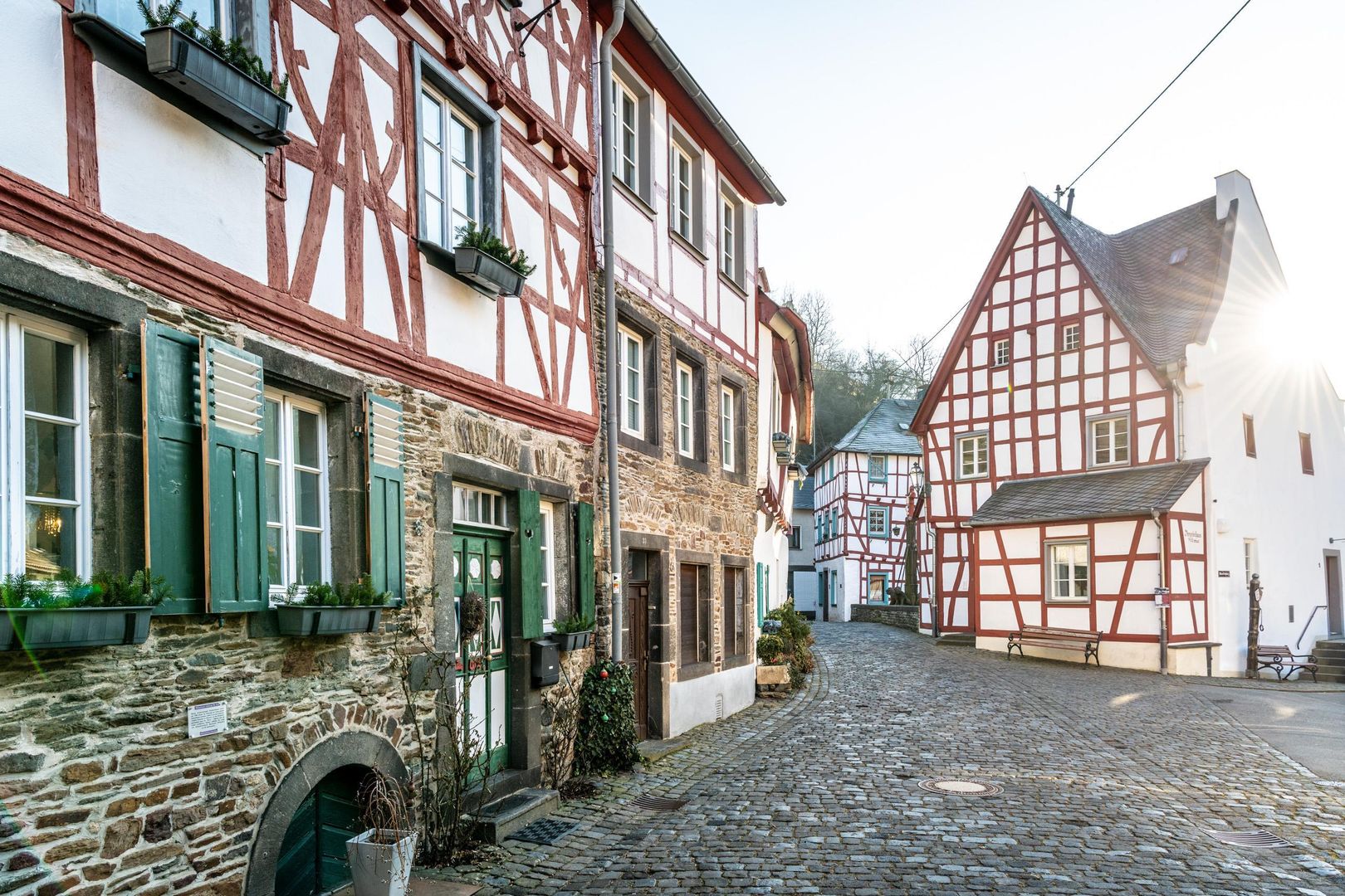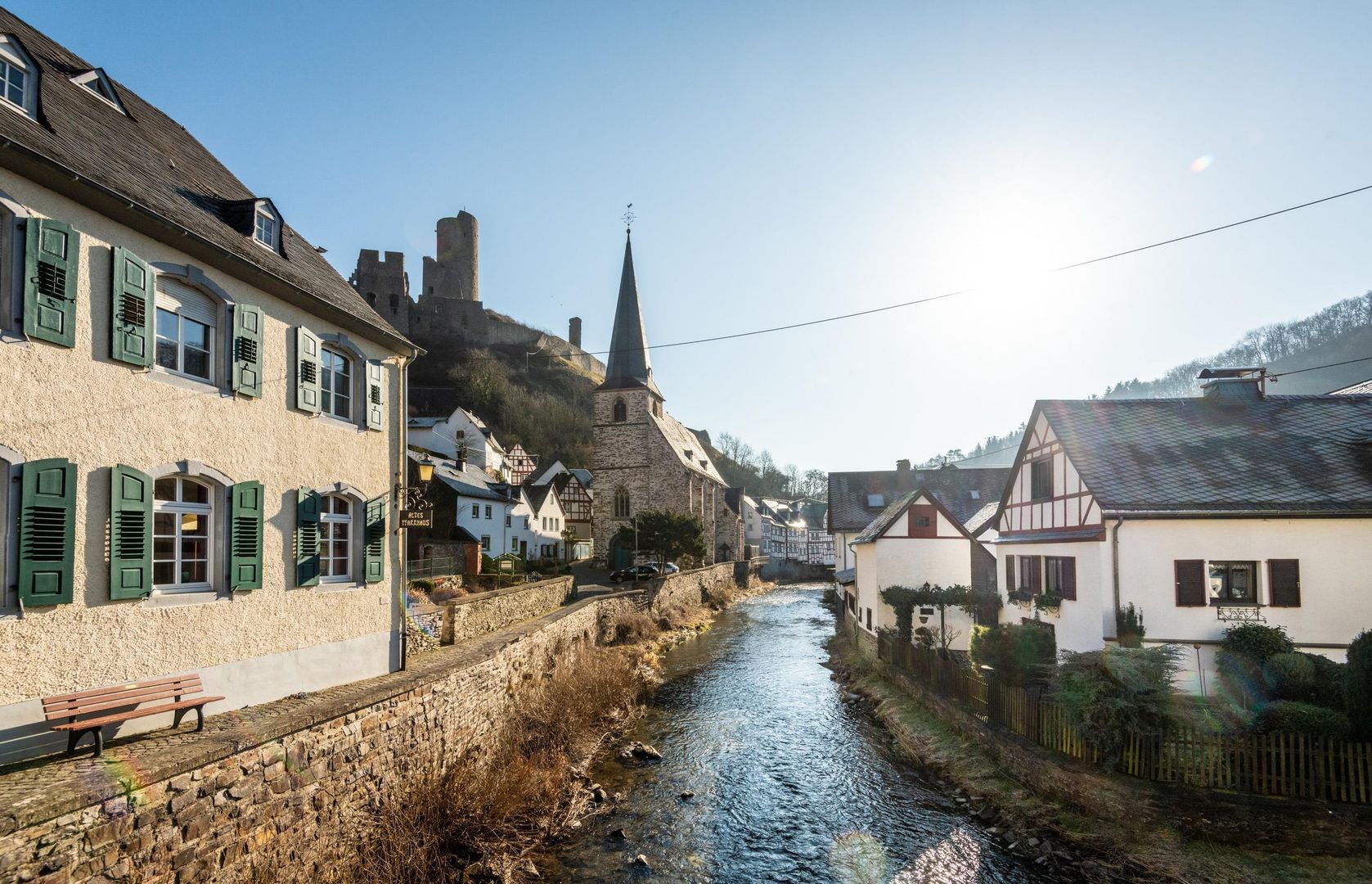 The red and white half-timbered houses nestle closely together, especially the four-gabled house from the 15th century transports walkers into a fairytale past. The still beautifully preserved half-timbered houses bear witness to the prosperity that Monreal achieved through the processing of sheep's wool and the manufacture of cloth from the 17th century onwards. In the second half of the 19th century, handicraft was no longer competitive with international, industrialised rivals, and the population became impoverished. A fate that Monreal shares with the equally picturesque Monschau. Not only visually is Monreal a destination that relaxes the soul. Café Plüsch with its cosy interior, the Old Rectory with its cottage garden and sunny terrace on the banks of the stream or the former signal box at the gates of the town are perfect addresses for foodies. The originally furnished restaurant on the former railway line is connected to the medieval town centre via a promenade along the Elzbach. The highlight for lovers of handicrafts is the pottery in the old school with its colourful ceramics, also displayed in a terraced garden.