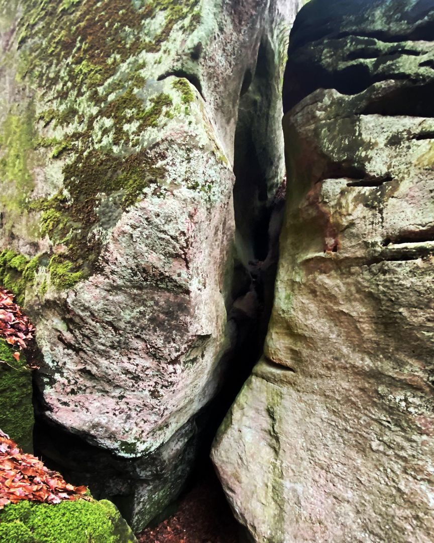 The Muhmenlay is one of the most mysterious places in the Bollendorf forest. It is said that 300 years ago, an old muhme, a herbal witch who supplied the people of Bollendorf with medicinal herbs, lived here in a rock cave. There is a narrow, high entrance to this cave in the rock. It is said that her spirit still lives here.