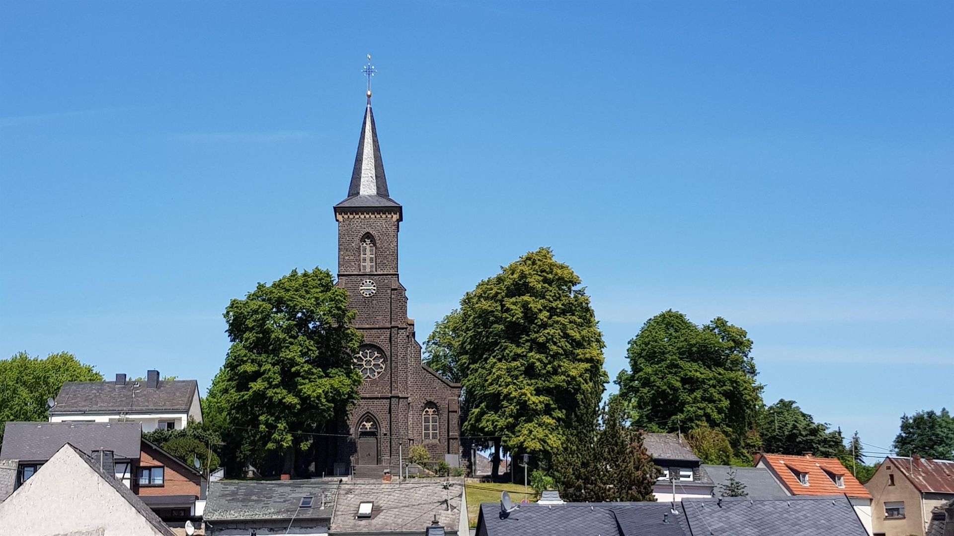 The local community Ettringen is located at the northern edge of the municipality Vordereifel and is the most populous of the 27 Vordereifel communities. Ettringen is surrounded by the three mountains Hochsimmer (587.9 m above sea level) in western direction, the Hochstein (562.5 m above sea level) in northern direction and the Ettringer Bellerberg (427.5 m above sea level) in southern direction.