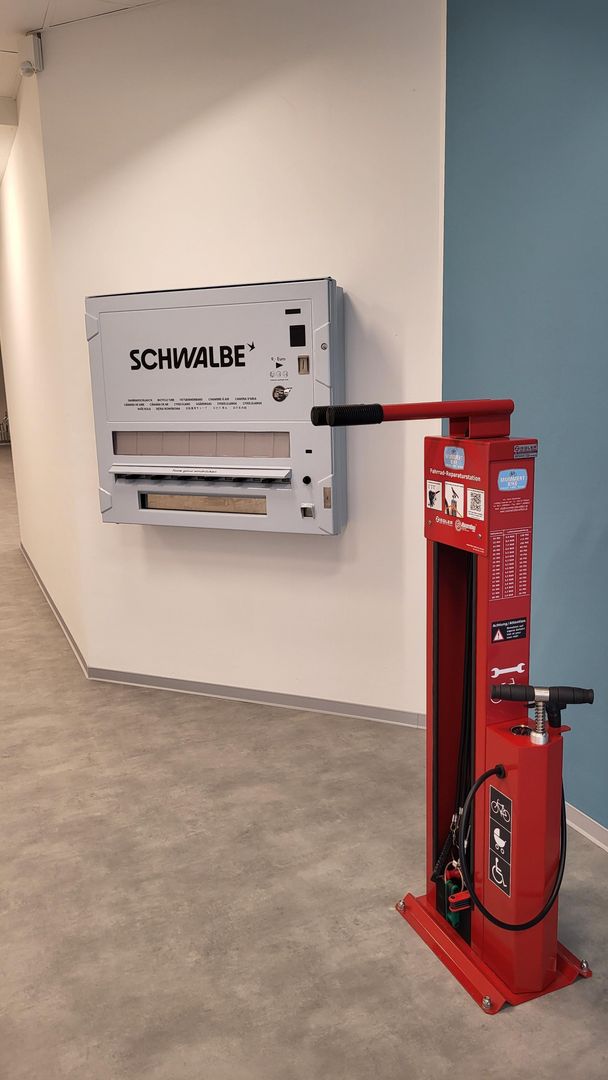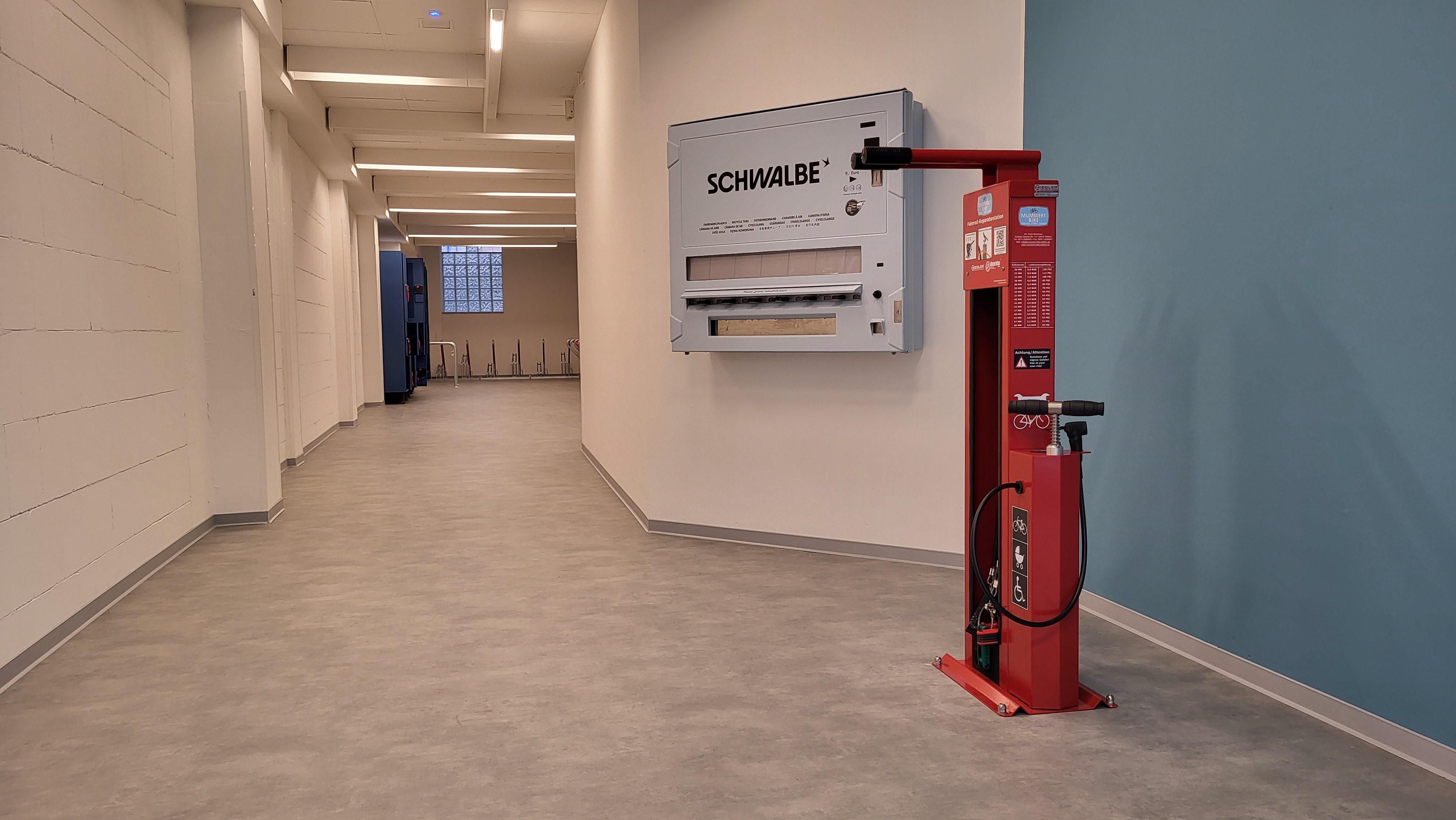 In addition, the lockers from the former Vitelliusbad offer the option of securely locking up helmets and luggage. The bike garage's innovative offering is rounded off by an inner tube machine, which was financed by the company Mummert Bike from Wittlich, and a service station that enables small repairs to be carried out.