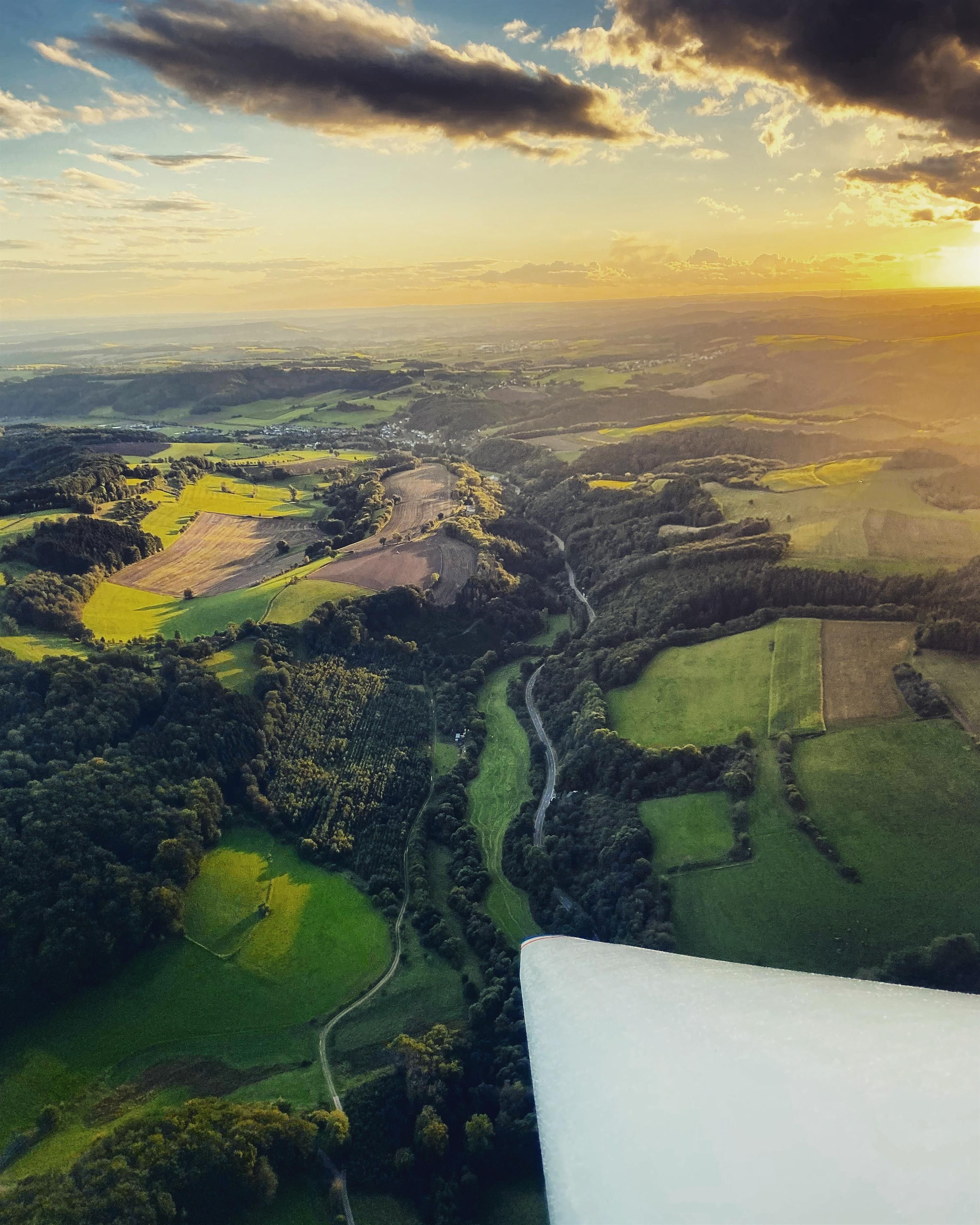 On a sightseeing flight in a glider, you can soar over the wooded hilly landscapes of the Islek, the fertile farmland of the Bitburger Gutland, over the maars typical of the volcanic Eifel and over the Moselle valley with its vineyards. A detour to our neighbours in Luxembourg and Belgium is also included. Numerous sights are waiting to be discovered from a bird's eye view! During the flight in a glider, all you can hear is the sound of the air.