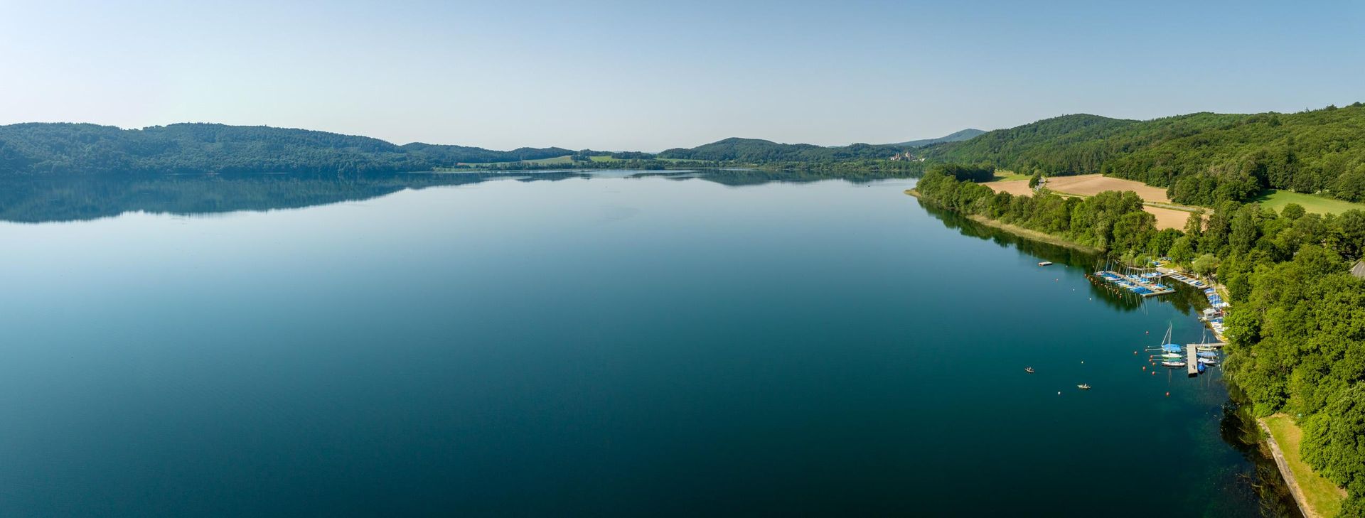 With its impressive water surface of approx. 330 ha and its depth of approx. 55 meters, the lake offers water sports enthusiasts all possibilities for active leisure activities.