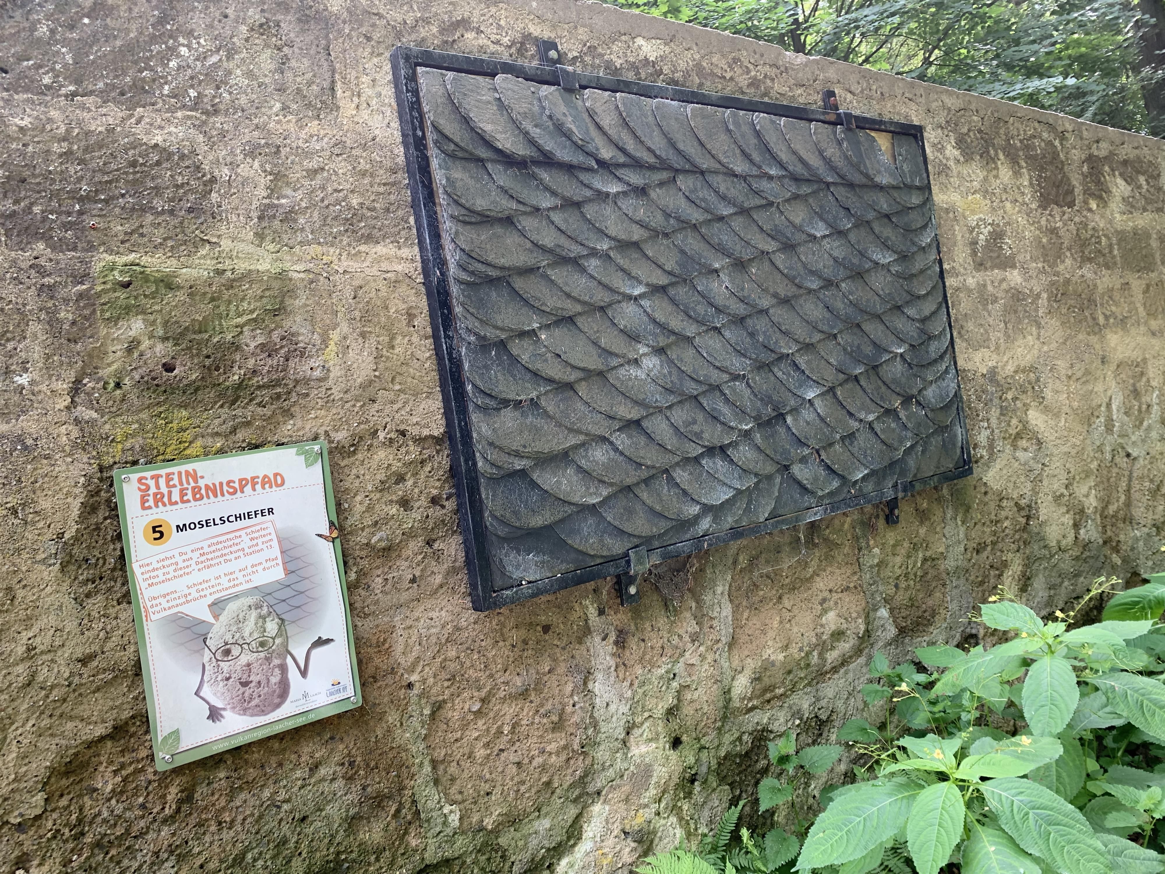 The mascot of the Laacher See volcanic region "Laachus", the floating pumice stone, accompanies the children along the 300 m long stone adventure trail on the monastery wall of Maria Laach and introduces them to volcanism with puzzles and child-friendly tables.