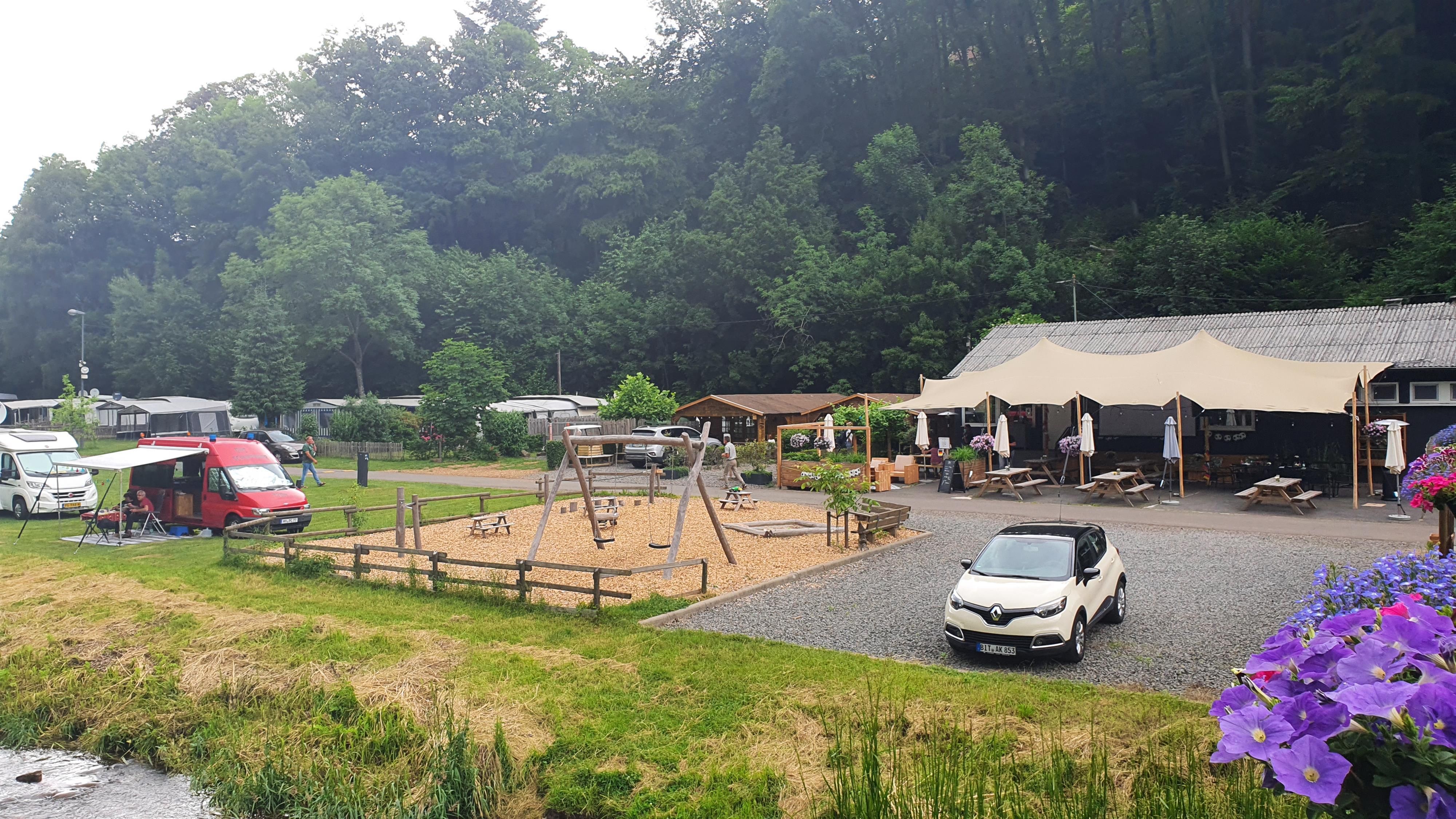 The two sides are connected by a footbridge. The camp site has a small restaurant with a nice terrace. Hiking and cycling trails start from the campsite and you can visit the idyllic town of Kyllburg. Here you will find small shops, supermarkets, a few restaurants and also a train station.