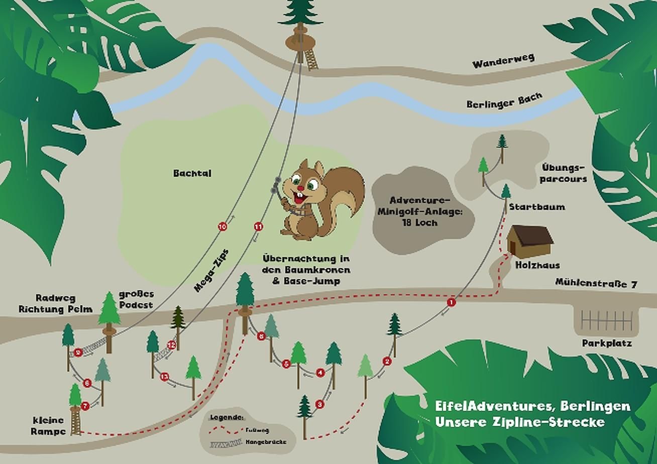 • 12 breathtaking ziplines incl. Mega-Zips over the entire Berlinger-Bach-Tal