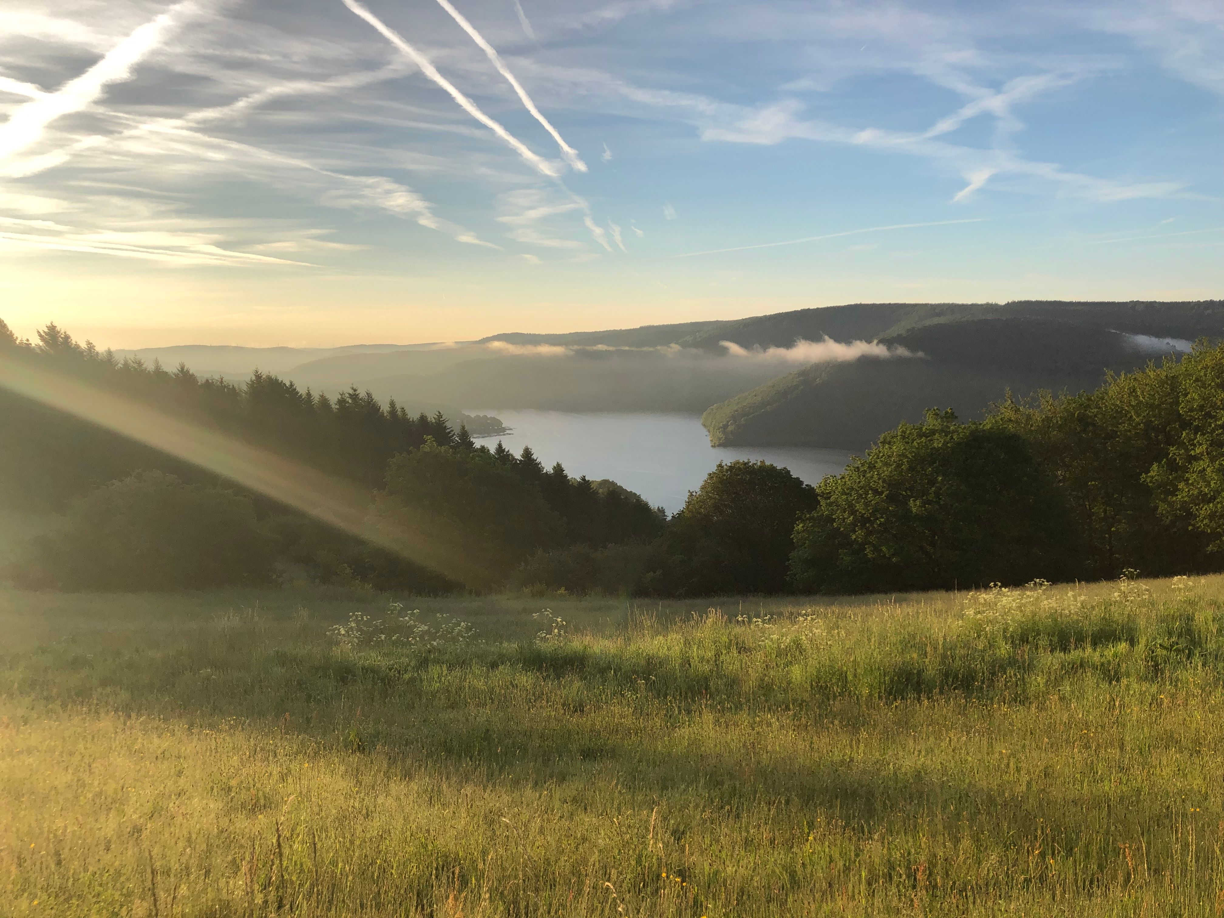 The trail offers magnificent panoramic views of the Eifel landscape. Starting at the church in Strauch, the hike leads along the typical Eifel field landscape to the Michelshof wind farm. Further up, there are impressive panoramic views of the Rursee and the Kermeter opposite.