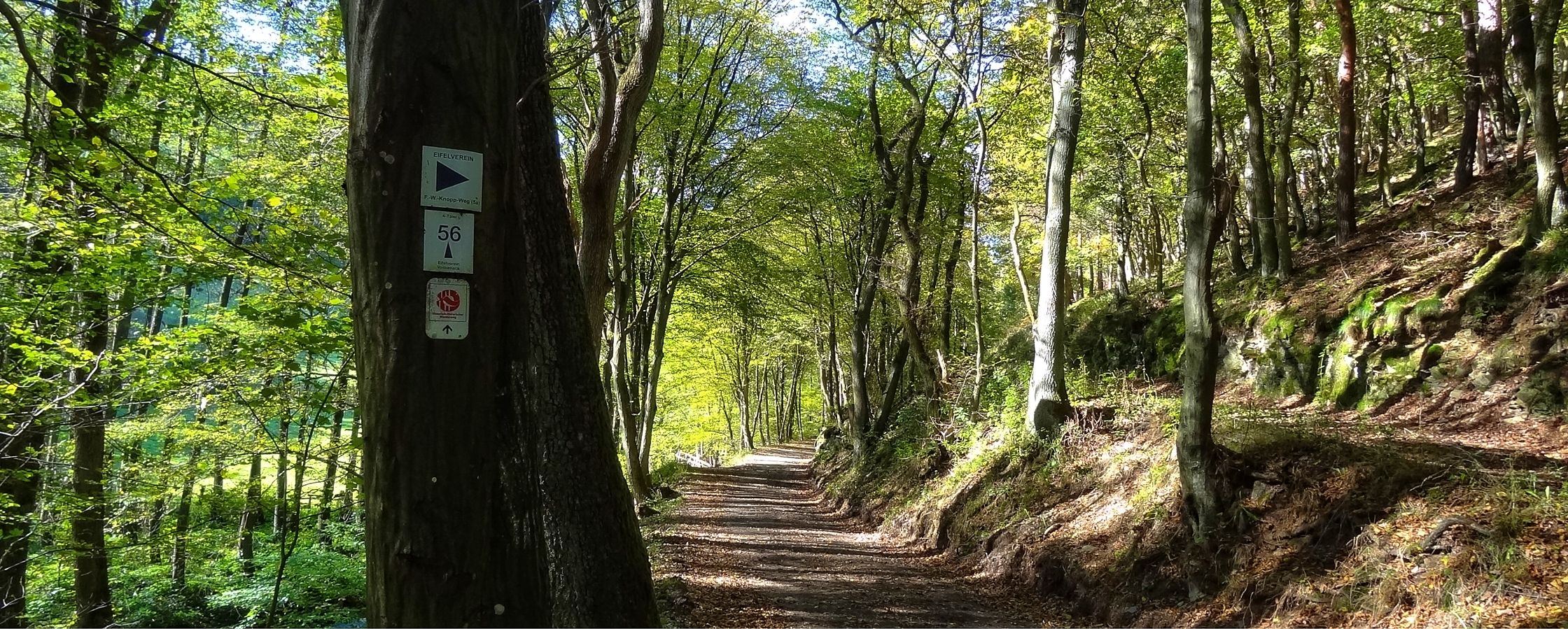 The characteristic terracing can be seen in many places along the hiking trail. This occurs when a river is no longer able to transport its debris and deposits it in the floodplain. If a river deepens again due to a change in climate, it cuts through the previously formed terrace. The formerly swampy valleys of the Eifel only acquired their function as traffic routes after the river regulation at the beginning of the 20th century.