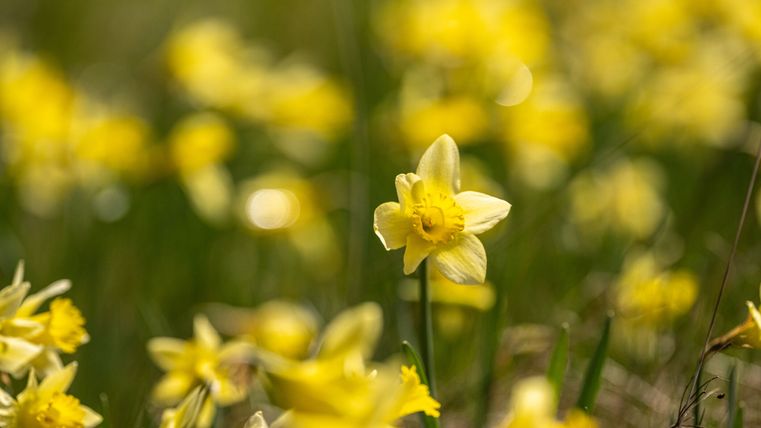 The "Kleine Narzissenrundweg 73" leads from the Höfener Mühle mill over 5 km through the Perlenbachtal valley to the "Unterer Steg" and back again.