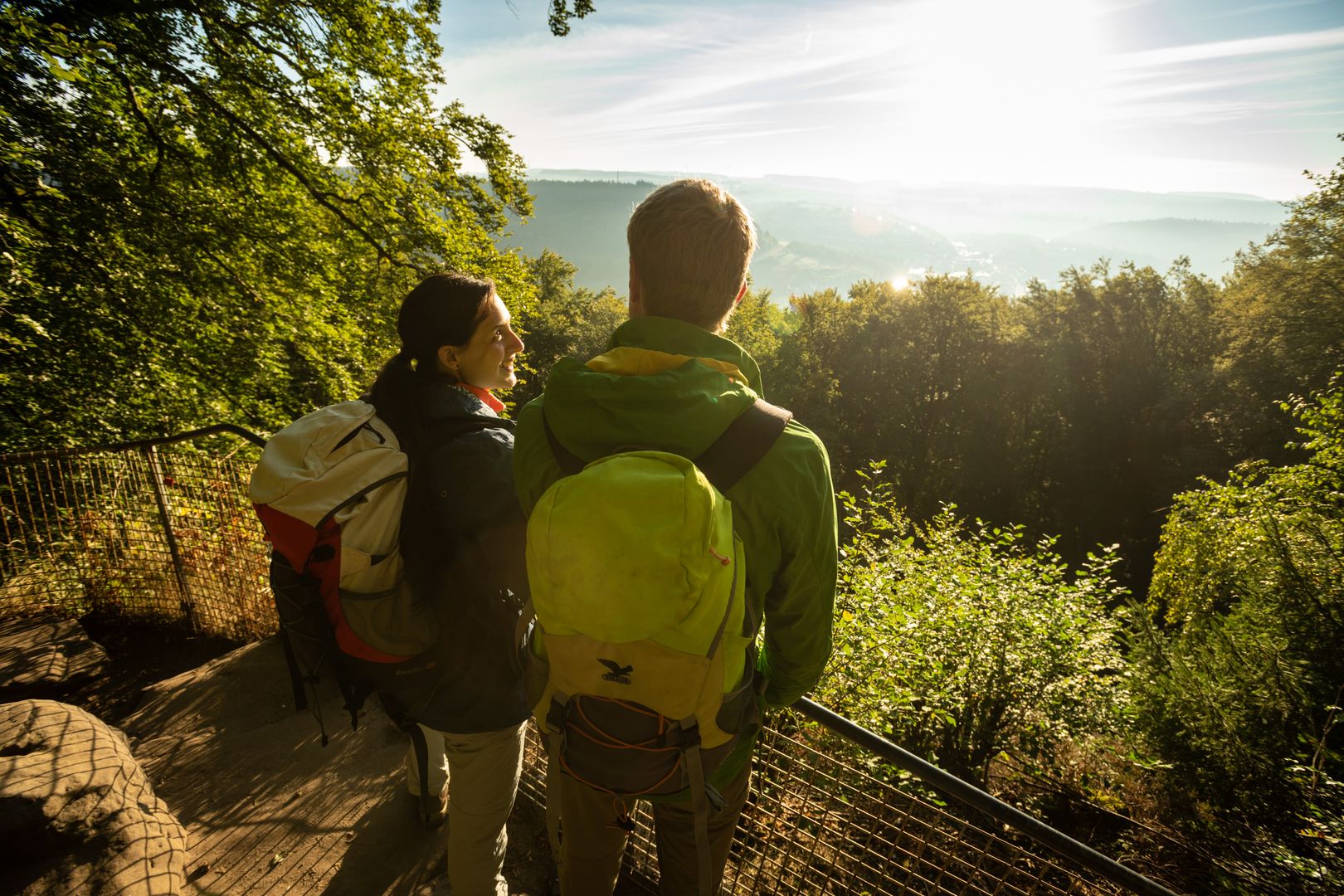 How was the Devil's Gorge formed? Did bees really build honeycombs in the sandstone? Why do hops grow in the Prüm Valley? Listening tour reporter Marco Neises and archaeologist Elke Wagner take you on a tour and show you the highlights of the fascinating rocky landscape around the Devil's Gorge. In the Nature Park Museum, you will fly over the German-Luxembourgish Nature Park in a helicopter with the two of them, travel back to the Stone Age and hear exciting stories about the Celts and Romans!