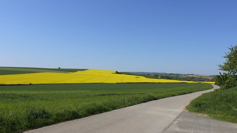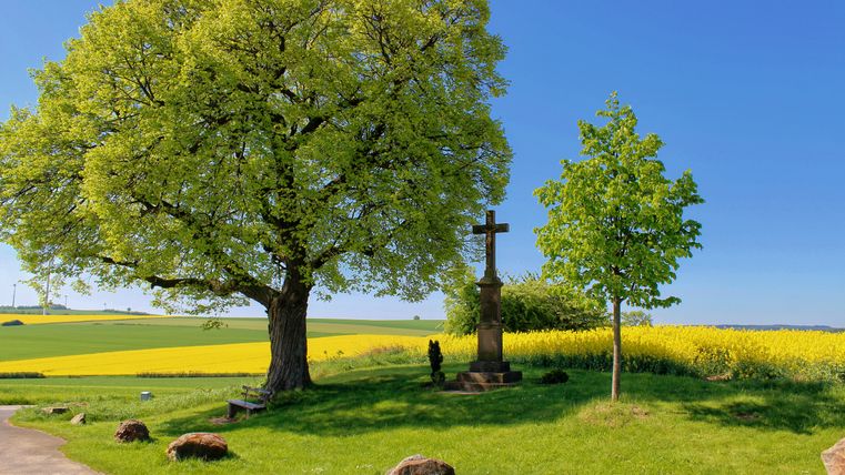 From here, the trail continues along several wayside crosses to the Mühlenberg. Here you can enjoy a view of the Börde towards Zülpich and the Jülich countryside.