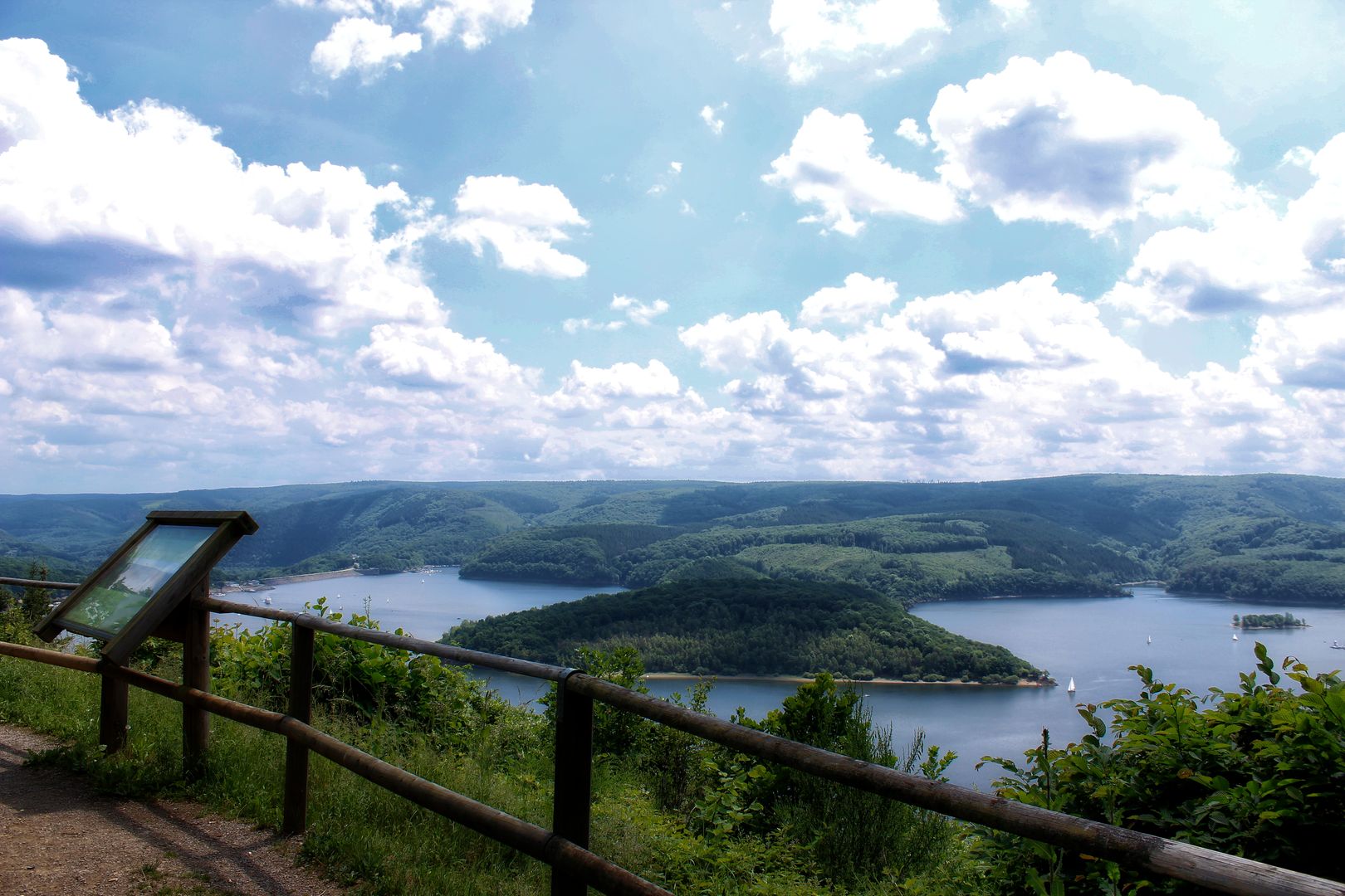 Cross the dam wall to enter the Eifel National Park and walk along the lakeshore again before climbing up the Kermeter through the Hohenbachtal valley. On the "Hirschley", the counterpart of the southern shore of the Rursee to the "Schöne Aussicht" again offers an impressive view. Now the Kermeter is as good as "conquered" and from the "Black Cross" the Bachtäler-Höhenoute descends to the Urft dam wall and finally reaches the Eifelsteig after around 38 km.