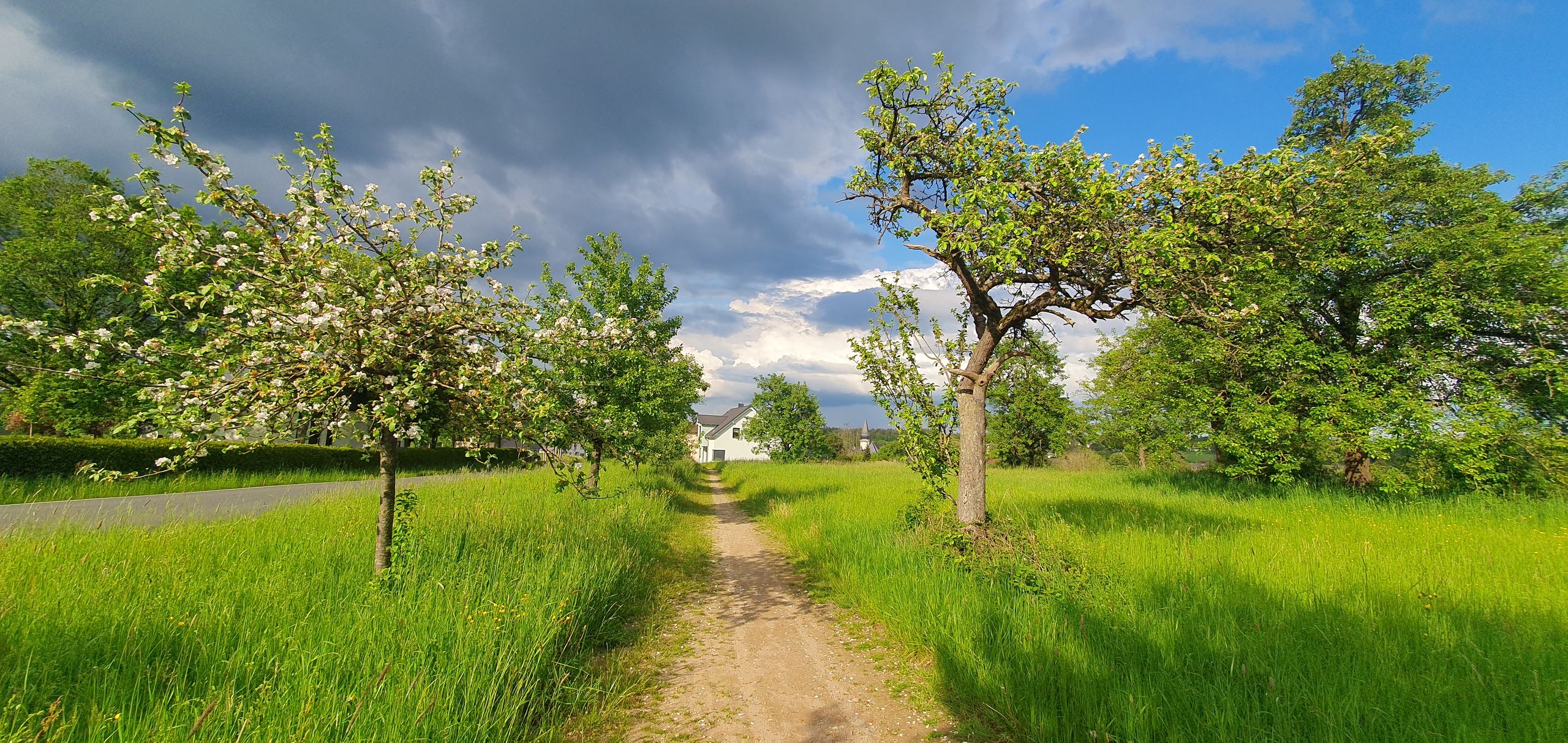 The pedestrian connecting path between the municipality of Zemmer and the district of Rodt begins at the parking lot of the Zemmer cemetery.