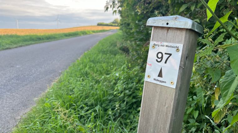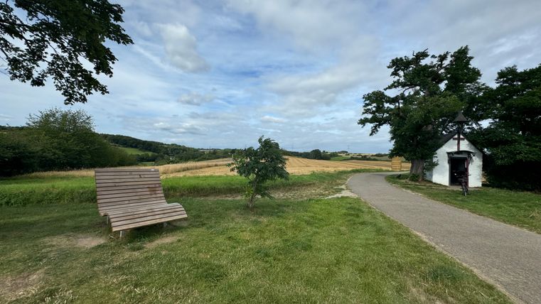 First you reach the Bördeblick "Zum Breidel" with a magnificent view over Zülpich into the Rhine Valley as far as the Siebengebirge mountains, if the air is clear enough. The small village of Muldenau lies on your left along the ridge until you reach the Galgenberg and the beautiful Antonius Chapel. The route takes you slightly downhill into the Neffelbach valley along the Gödersheimer Mühle mill and back up to the edge of the village of Berg. You can shorten the route here, but you will miss the Klemensstock with its views of the Rhine and Rur valleys.
