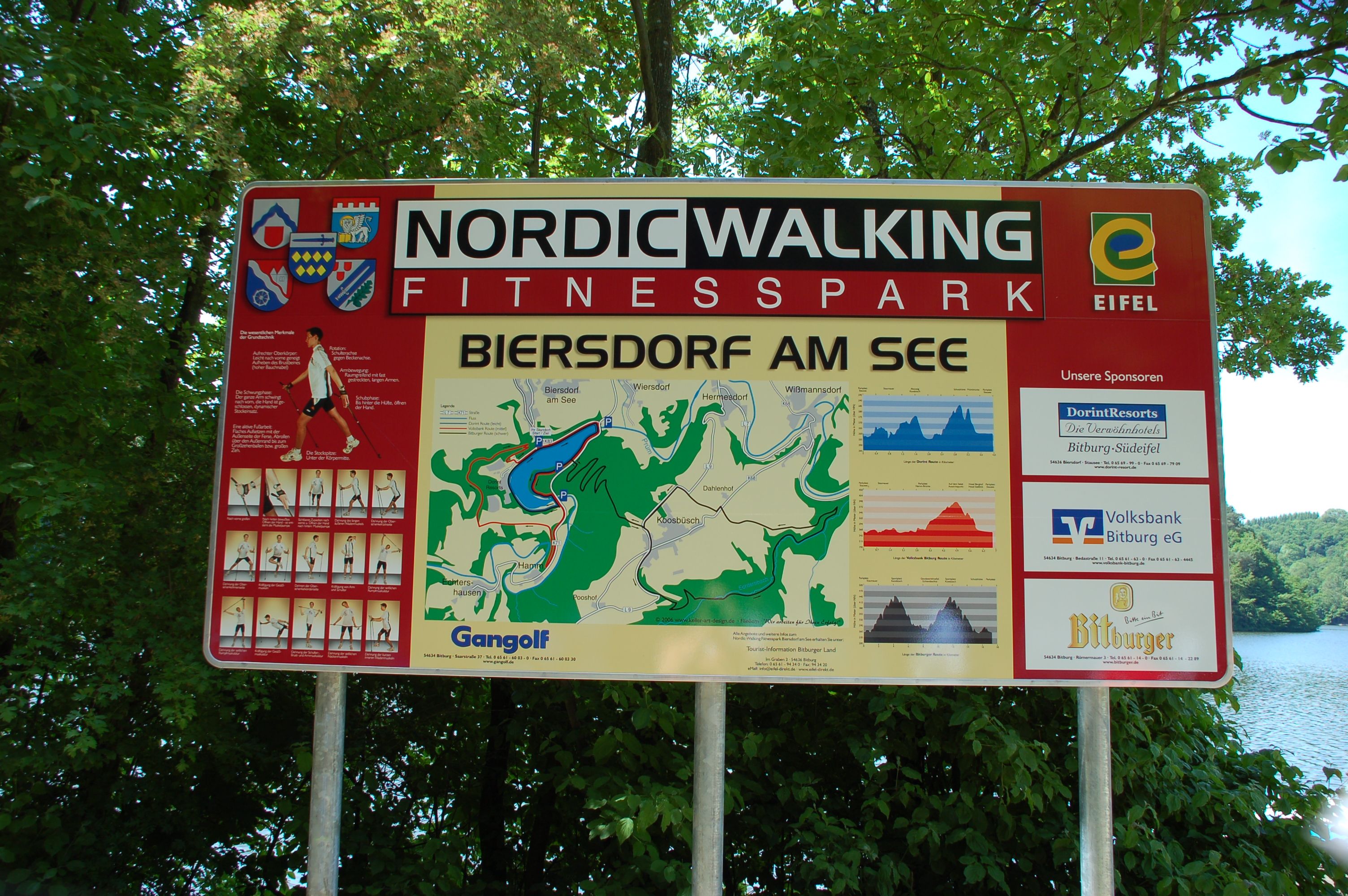 There is a large sign at the starting point that gives an overview of the courses and the basic movements of Nordic walking.