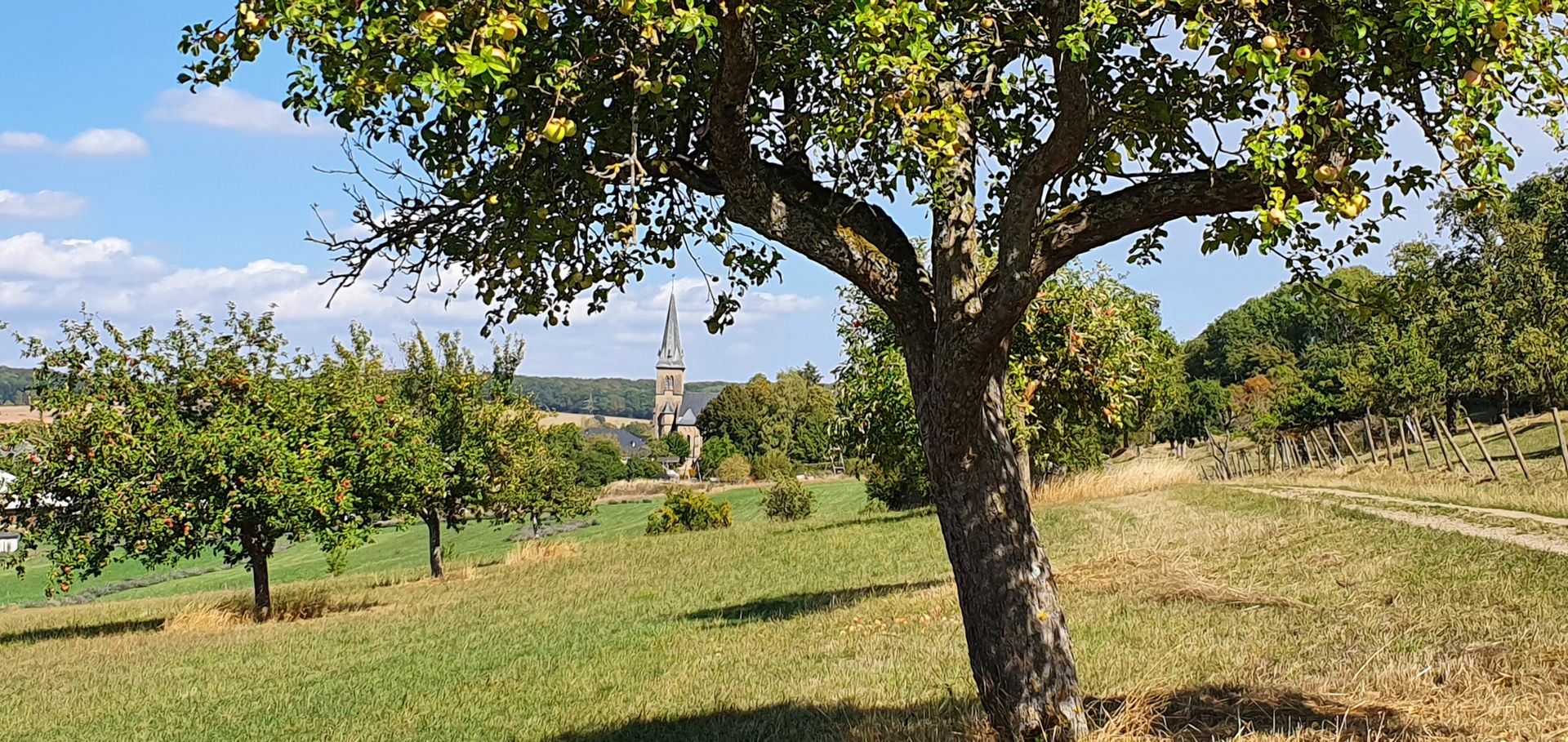 Beautiful views over the orchard meadows and the Nüßbach valley are offered to you here.