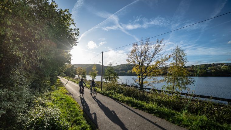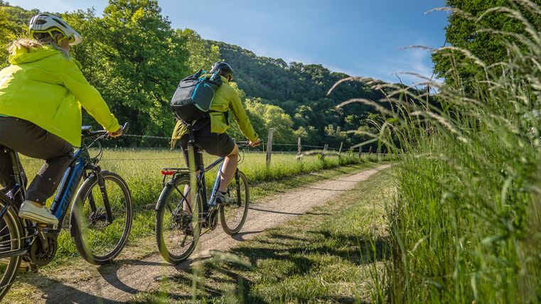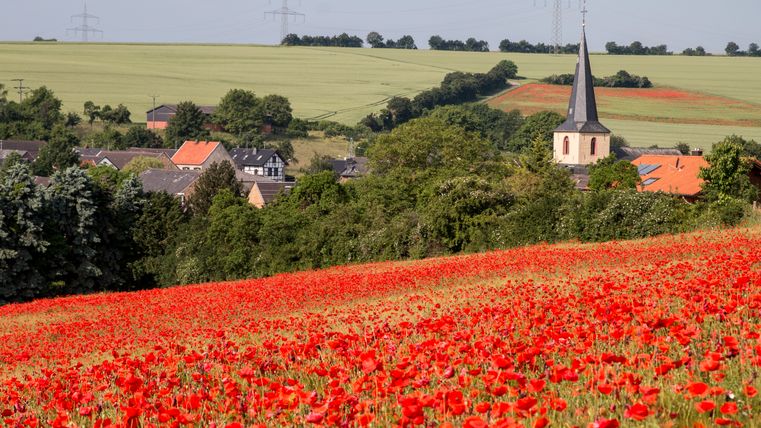 The tour starts in Nideggen at the National Park gate. Parking spaces are available here. You roll down the path to Abenden on the Rur and reach the RurUfer cycle path. On car-free paths and always along the water, you cycle to the Obermaubach reservoir and via Winden to Kreuzau. The route now climbs gently uphill and through a section of forest to Stockheim. Now the Börde experience begins. On the left, there are always far-reaching views of the plain. From Ginnick, the route becomes a little hillier. After Embken, you reach the Antonius Chapel surrounded by a botanical feature. Limestone comes to the surface here and provides a habitat for orchids and gentian. Continue through the pretty village of Muldenau. An information board on Ulmenstrasse explains the history of the village and a curious name change. A gentle climb takes you through a tranquil stream valley to Thuir and Thum. In Boich, turn left and cycle uphill to Rath. The climb is worth it, as Rath offers a final highlight with a view of the Rhine valley and the Siebengebirge mountains before you enter the village. You then enjoy a leisurely ride back to the old town of Nideggen with its many refreshment stops and back to the starting point.