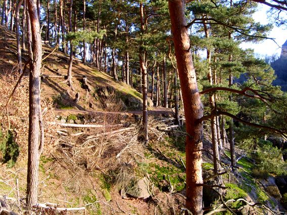 Around 220 million years ago, a desert climate prevailed in the Eifel, characterized by great aridity and rare but heavy rainfall. These washed red-colored sands and stones into the widely ramified rivers. The river deposits solidified together with sand dunes to form red sandstone. Much later, the Rur river began to persistently and patiently cut its way deep into the mountain rump. This created the impressive rocks that can be hiked today on the red sandstone route.