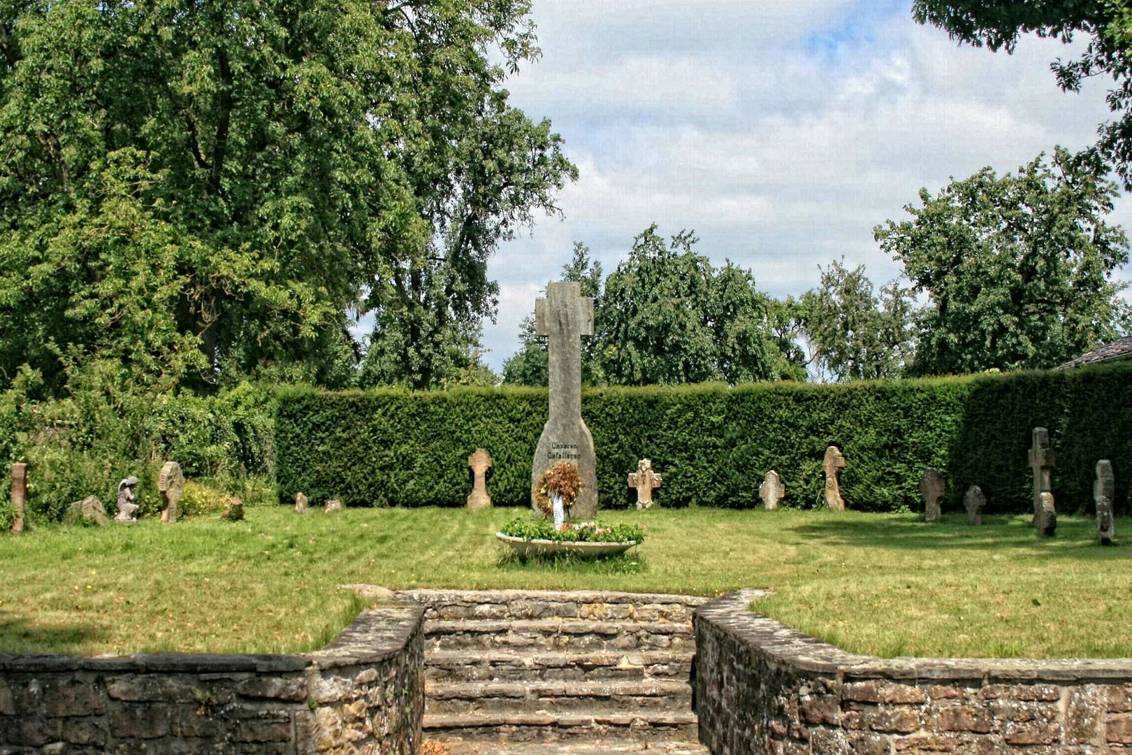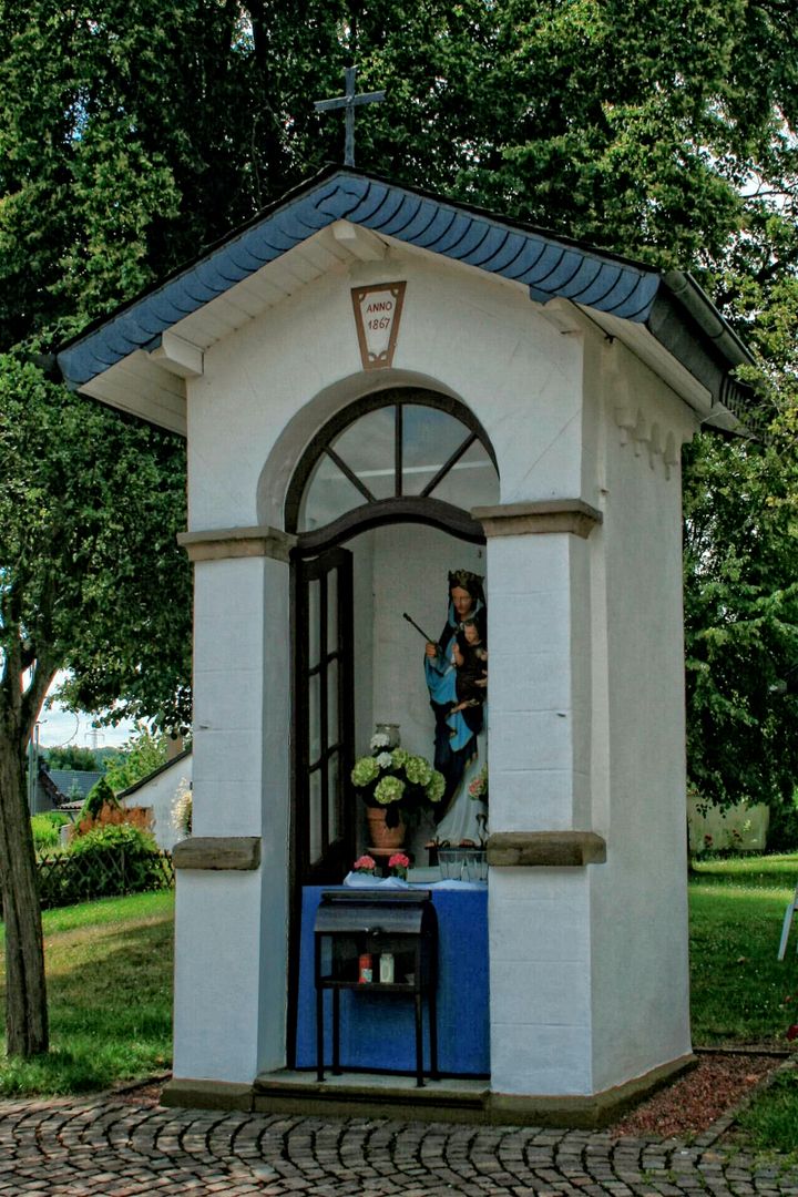Since 2007, it has been home to the National Park Guest House, which is very popular with nature lovers. Things get nostalgic on Kermeterstraße. After the municipality of Hergarten became independent for a long period in 1895, the mayor's office resided in the stately quarry stone house. Shortly afterwards, in the middle of the village, another "authority" asks for attention. In 1876, villagers erected a chapel dedicated to the Virgin Mary, whose colorful Madonna statue was probably a gift from the Mariawald monastery. The treasures of St. Martin's Church, on the other hand, cannot be grasped in passing. Inside the church, ancient sacred art and modern stained glass are well worth a visit. Opposite the parish church, a memorial commemorates the fallen of both world wars. However, a Celtic grave, which also has its final resting place here, goes unmentioned. The circular route then leads along a narrow farm track out of the built-up area and offers unobstructed views of the gentle cultivated landscape that surrounds Hergarten. For centuries, the site was also used as a brick kiln. Until 1960, sand from the local pit was used to produce building materials for the region in the brick factory near Kermeterstraße. The last stop on the Hergarten walk, on the other hand, has anything but work in mind. The Generation Park invites you to enjoy sport, games and fun. With renewed energy, the way back is almost self-evident.