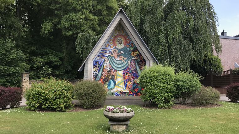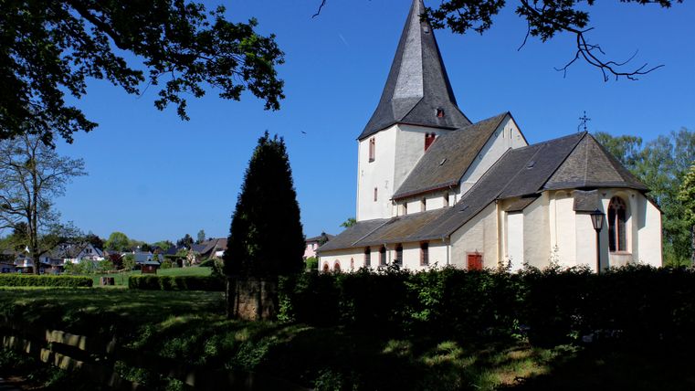 The Vlatten tour takes the village's "parlor" - the youth hall - as its starting point. It was built during the First World War and served as a military hospital during the Second. Its large hall is still a popular meeting place in village life today. The walk continues to the south-western edge of the village, more precisely to Mühlengasse. This picturesque street got its name from a watermill that was located here until the 19th century. The mill crushed the copper ore extracted from two nearby mines. From the hollow of the Vlatten stream, the path now climbs to the top of the Lützenberg. Three times a day, the bells of St. Michael's Chapel ring down into the village. The chapel, which was built in 1912, contains interesting stained glass windows and late medieval paintings. The next stop provides a modern contrast: the brightly colored mosaic of the Virgin Mary. The image of the Virgin Mary was created in 1970 by Margarita Rieth from 15 hundredweights of stone. A few steps further on, Vlatten Castle resides almost enchanted. The striking, historicizing castle tower from the 19th century is just one of the many structural changes and additions that the former moated castle has undergone since the 14th century. The Basilica of St. Dionysius is also located on the Vlatten stream. With its mighty west tower, it has been the town's landmark for many centuries. The last stop draws your attention to the wayside crosses that are so typical of the Rhineland. With a little time, you can discover ten more in the Vlatten district.